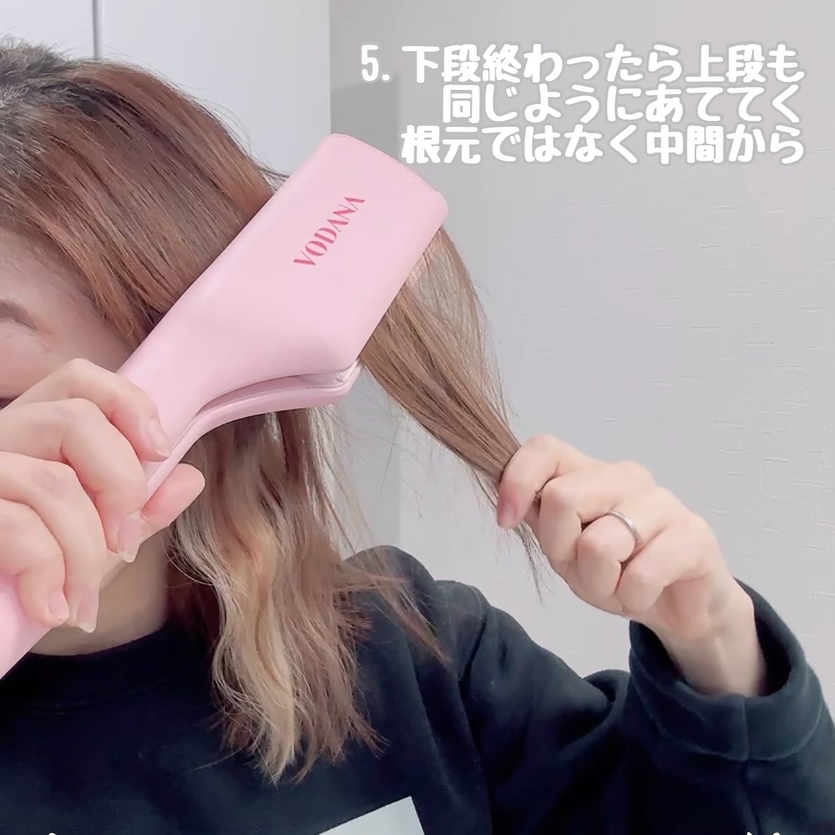 アイドルも愛用のVODANAのトリプルフローウェーブアイロン✨ S字プレート内蔵で、あてる位置をずらして挟むだけでカールがついていくから慣れれば5分くらいで韓国っぽヘアができちゃうの💁♀️ 私くらいの長さでも楽しめるよ〜🥰っていうのが誰かの参考になれば嬉しいな🫶 挟むだけのアイロンの方が初心者でも🔰失敗なくできて、簡単で気に入った🙌