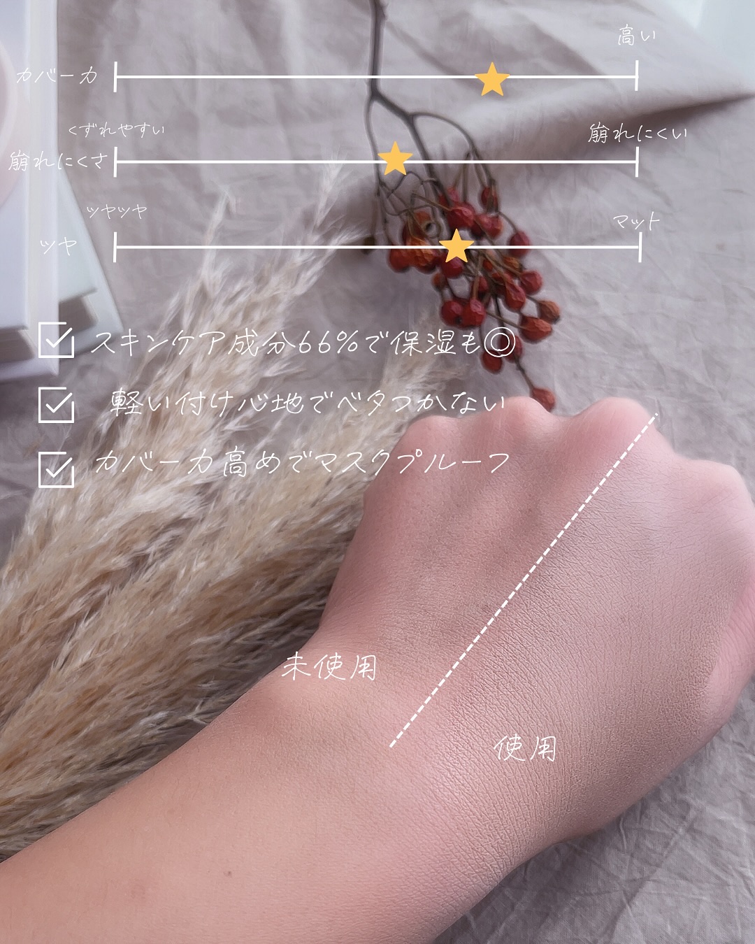 | ファンデーションランキング第13位 | 塗り心地といい、セミツヤ感 マスクしてても崩れがほぼ気にならない!! | 詳細を見る | |