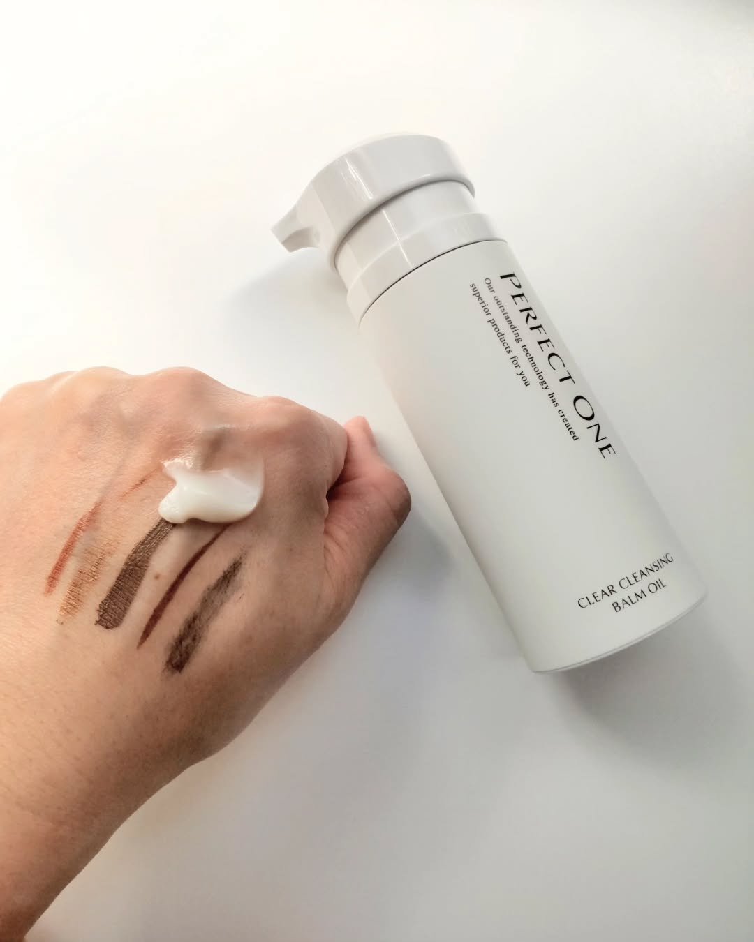 パーフェクトワン クリアクレンジングバームオイルはバームとオイルのいいとこ取りした商品で、濡れた手OK・ダブル洗顔不要一派的なグルーのマツエクOKなんです! 濡れた手OKってのが、個人的にめっちゃ嬉しくて子どもお風呂入れてからメイク落とそうと思ったら手濡れてるし、タオルで拭いてクレンジング出してからまたお風呂に戻っていたんやけど、もぉそのまま持って入れる😁 洗浄力も高めで、ファンデからマスカラまでごっそりoffクリーミーなオイルで肌への刺激感も特になく、私は大好きな使用感でした💖