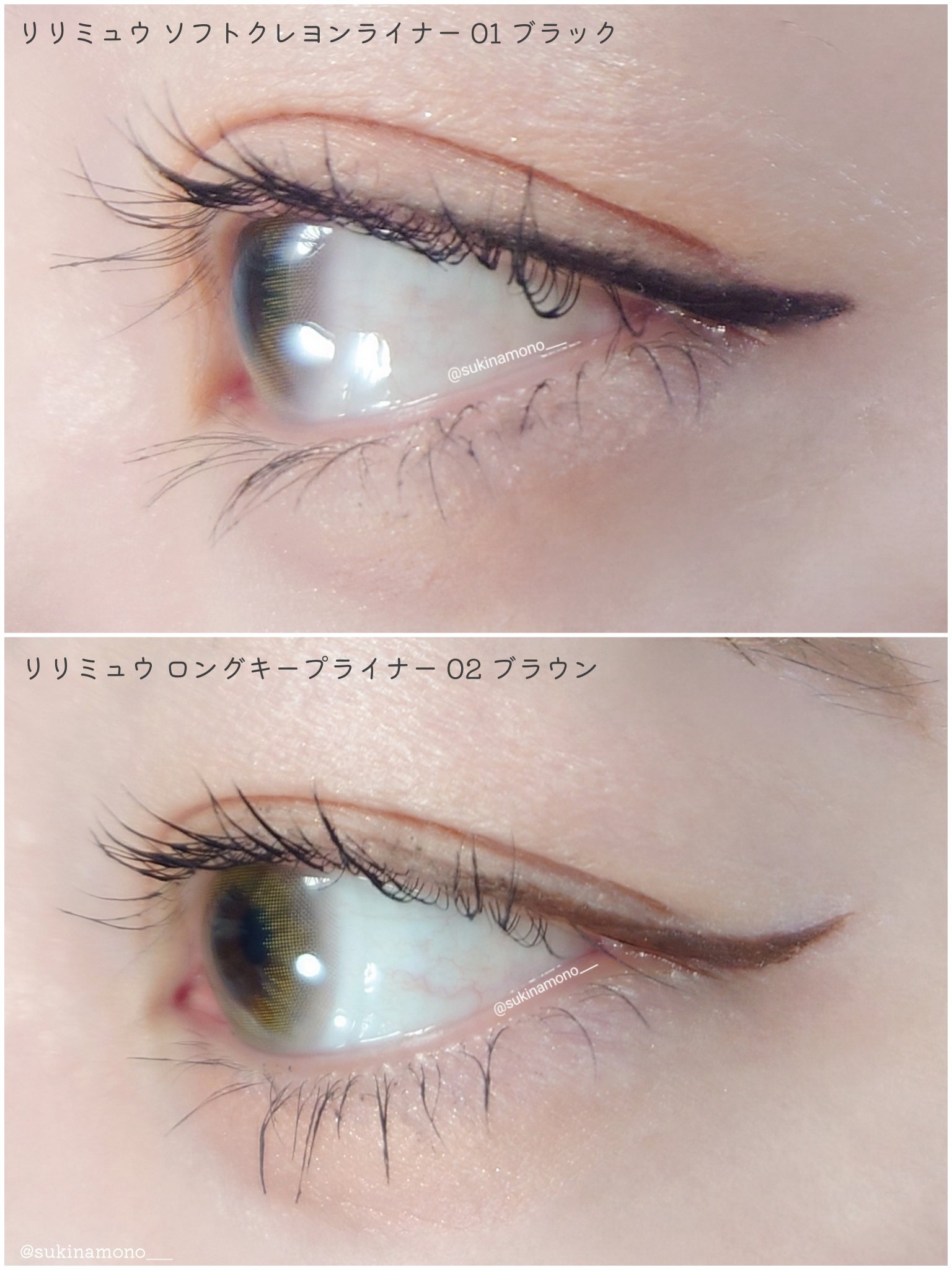 とにかく時間がたっても落ちにくい、にじみにくいアイライナーというところに着目し、開発されたそう。 ロングキープライナーは、0.1mmの極細筆。液含みの良い柔らかい筆先でなめらかな描き心地。 ソフトクレヨンライナーは、1.5mmの極細芯。クレヨンのようになめらかでするする描けるから、まぶたへの引っかかりも感じにくい♡