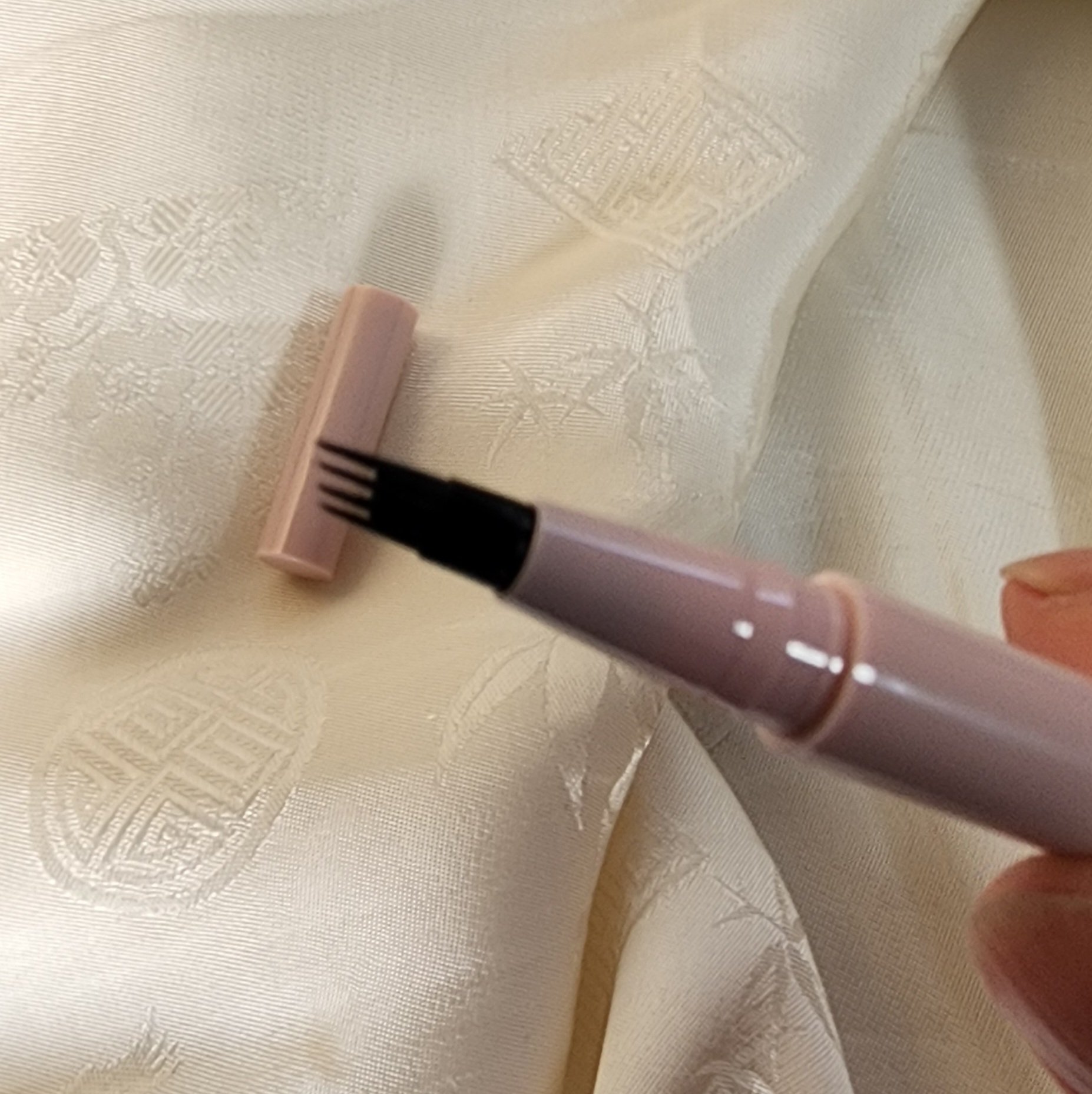 アイブロウペンシルと眉マスカラを組み合わせて使いました😊 ペンシルの方は少し赤みあるブラウンに感じました。 眉マスカラの方は色味めっちゃ可愛い🤭 でもなんかブラシが大きめで液も多く付くから少し塗るのが難しいかもしれない💦 まぁどちらも100円だし、そう思うといいのかもしれない!