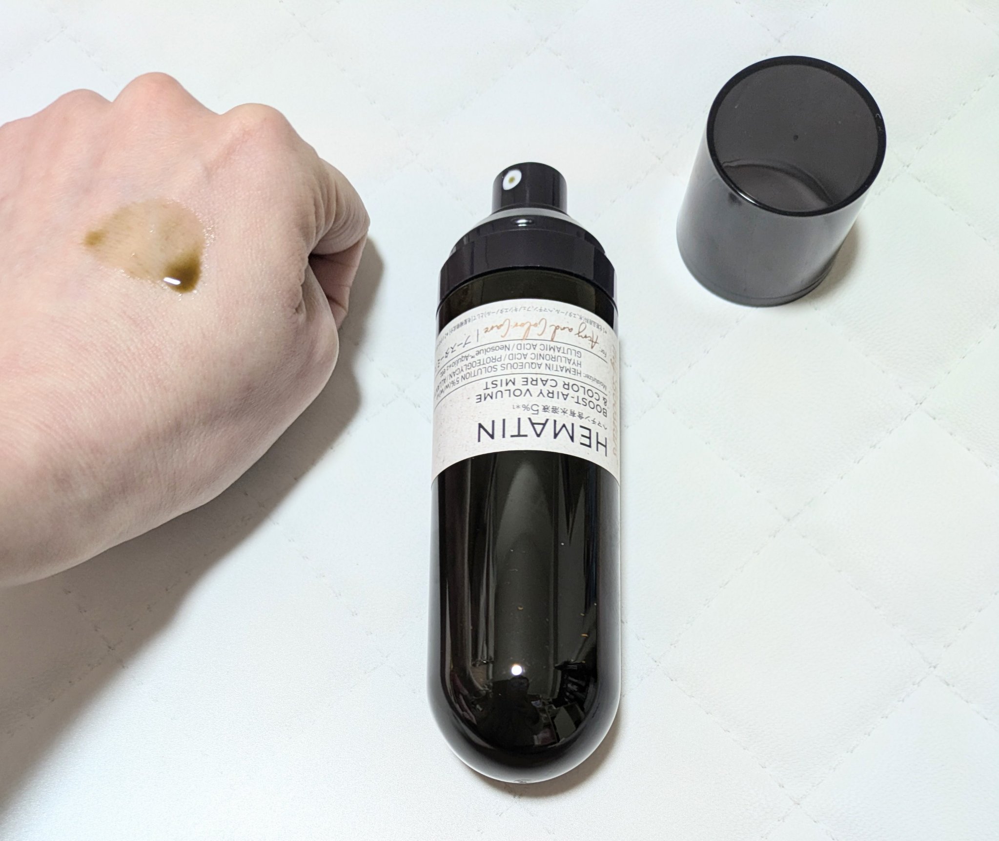 - ヘマチン(*1)配合、スキンケア発想から生まれた髪の導入美容液。カラーの色もちをサポートしてふんわり髪へ導きます。 ●ヘマチンブースト エアリー&カラーケア処方: 【ヘマチン(*1)】カラーした髪の色もちをサポート、乾燥ダメージを受けた髪を補修する 【ブースター(*2)】美容液成分(*1)の髪内部への浸透(*3)を助ける ●サルフェート・パラベン・鉱物油・合成着色料・界面活性剤・シリコーン・香料フリー *1 ヘマチン[毛髪補修成分] *2 シクロヘキサン-1,4-ジカルボン酸ビスエトキシジグリコール[保湿成分] *3 髪の内部まで