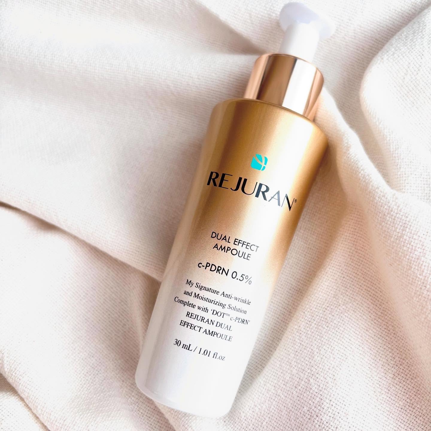 REJURANデュアルエフェクトアンプルDOTc-PDRNにセラミドまで配合された、アンチエイジングに特化したアンプル🫶🏻箱から高級感のある感じ😆✨少しとろみがあるけど、伸びがよくベタつかずお肌に馴染みやすい🎶刺激や香りもないから夜だけでなく...
