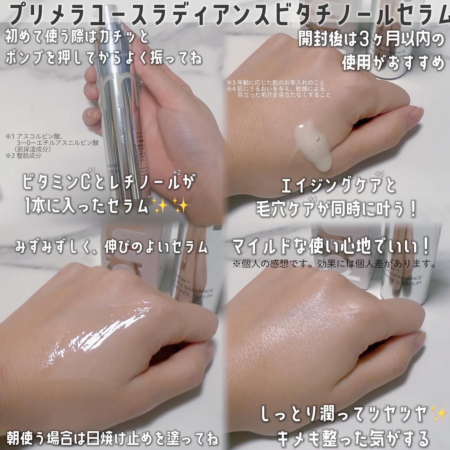 \ビタミンCとレチノールでWエイジングケア✨/⠀⠀@primera.jp⠀⠀プリメラ様から提供頂きました!⠀⠀ユースラディアンスビタチノールセラム⠀毛穴やくすみケアをしてくれる美容液♪⠀ビタミンCとレチノールって刺激が強そうなイメージだけど、...