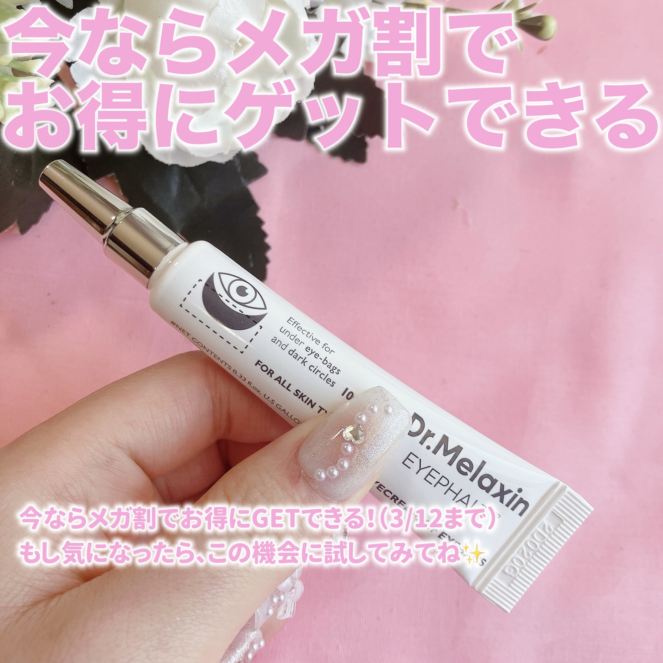 \アイバックの集中ケアに!/■Dr.Melaxin✔︎アイファルトアイバッククリームアイバック(目袋)の集中ケアにおすすめされているアイクリーム!使用目安は、米一粒ほどの少量でOK!毛穴より小さい微細針スピキュールが配合されているそう!使って...