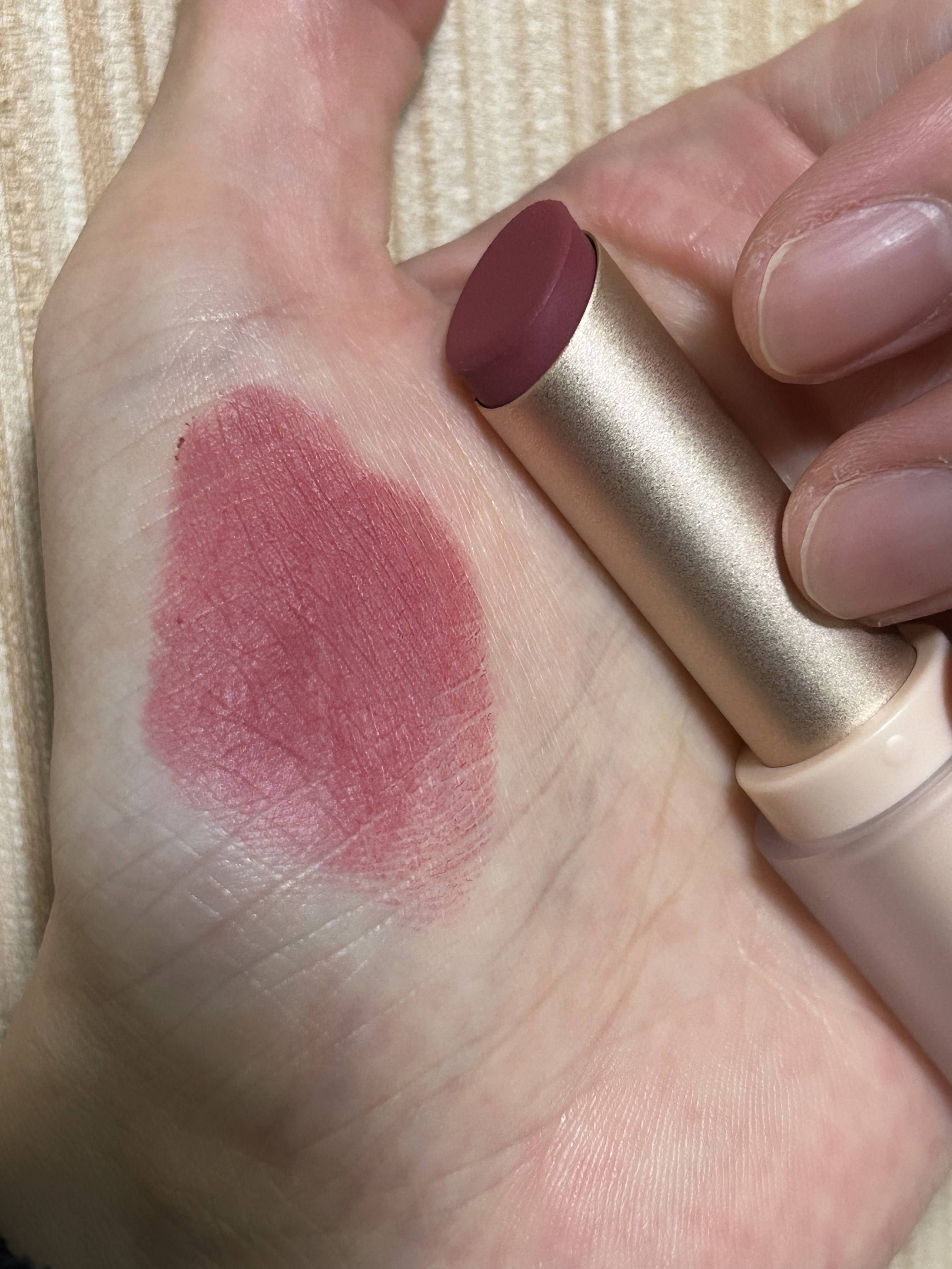ちょうどいいラメ感と色味が気に入った!! スウォッチしてみるとパープルっぽく見えるけど、ほっぺたに馴染ませるとキナリのようなラメ感が際立ってこれだ!!!って感じました! チーク、アイメイク、リップとして使えるので統一感あるメイクができそうです。 ラメの大きさといい、色味といい完璧でした。