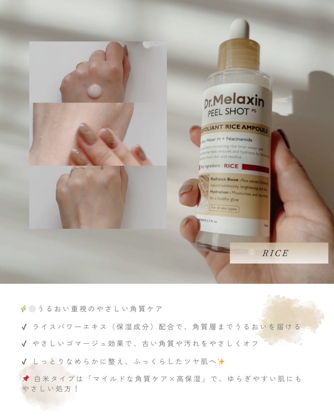 \ライスパワー/【Dr.Melaxin(ドクターメラクチン)】🌾白米ピールショットゴマージュアンプル🌾黒米ピールショットゴマージュアンプルお米の力で老廃物や角質をやさしくピーリングするおすすめのツルツルアイテム!白米のほうは細かい粒子で肌キメ...