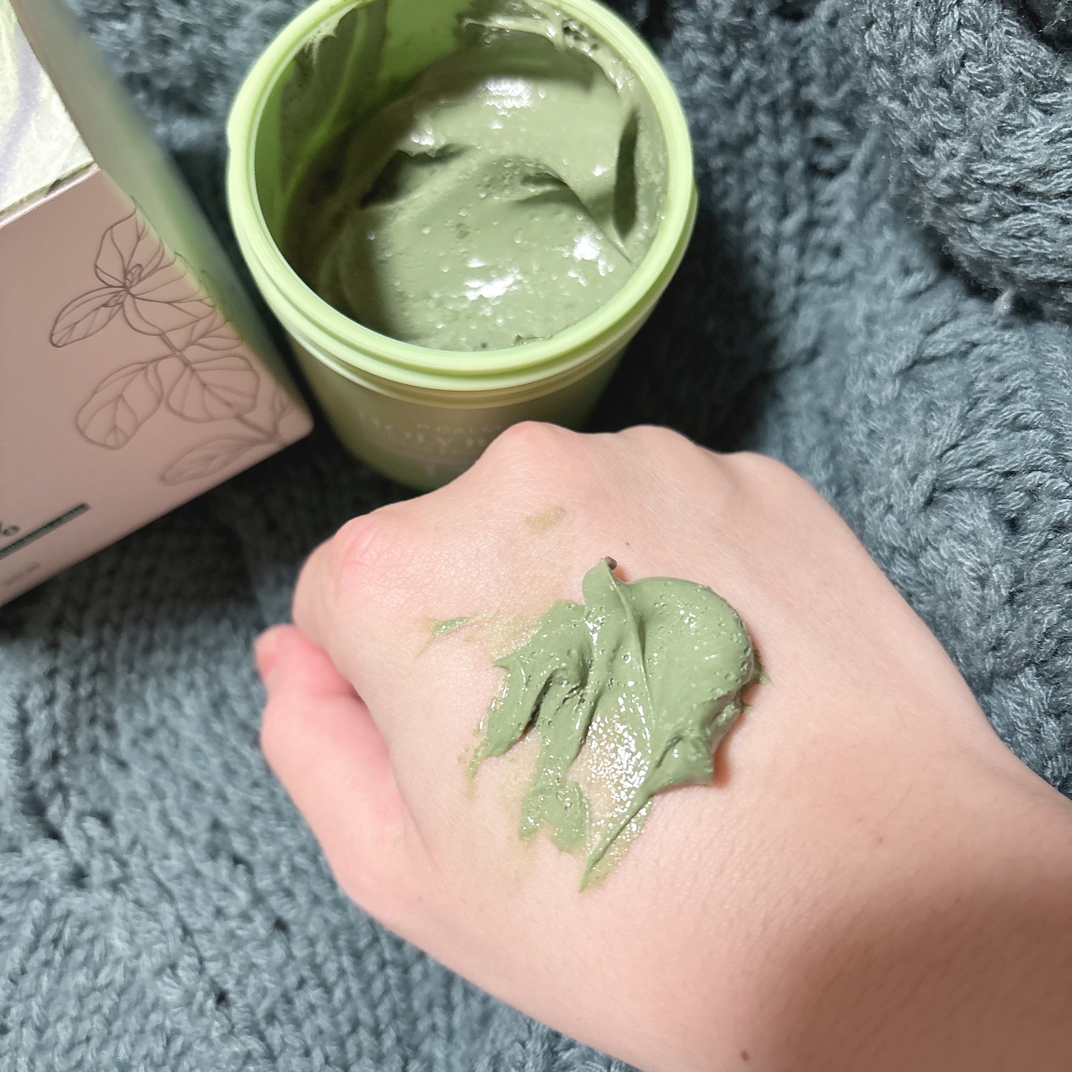 柔らかめのテクスチャーのパックでした。ほんのりフルーティーな日本酒の香りで、お酒の強い匂いが苦手なのですが、こちらの商品は心地よい香りで使うことができました。1分間でパックの時間が済むのに驚きましたが、1分間でもパックを落としたあとお肌がもっちりとするのを感じることができました。乾燥が気になる方は5〜10分置いても良いみたいです⭕️
