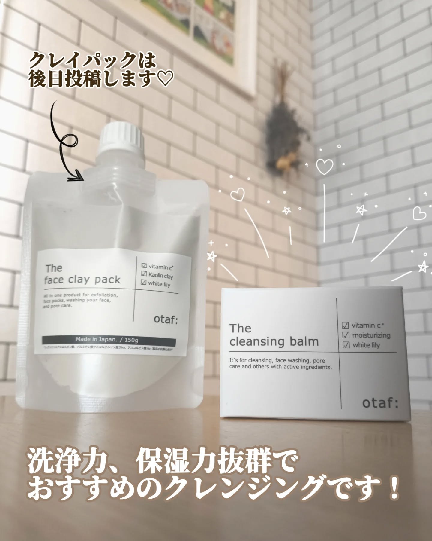 疲れた〜って時のメイク落とし&洗顔、これにハマってるよー!@cosmerepo様のキャンペーン当選でいただいたotaf:クレンジングバーム✨体温でとろけるバームが優しくメイクを落としつつ、しっとり仕上げてくれるよ😆1つ5役で楽ちん洗顔〜🎶香り...