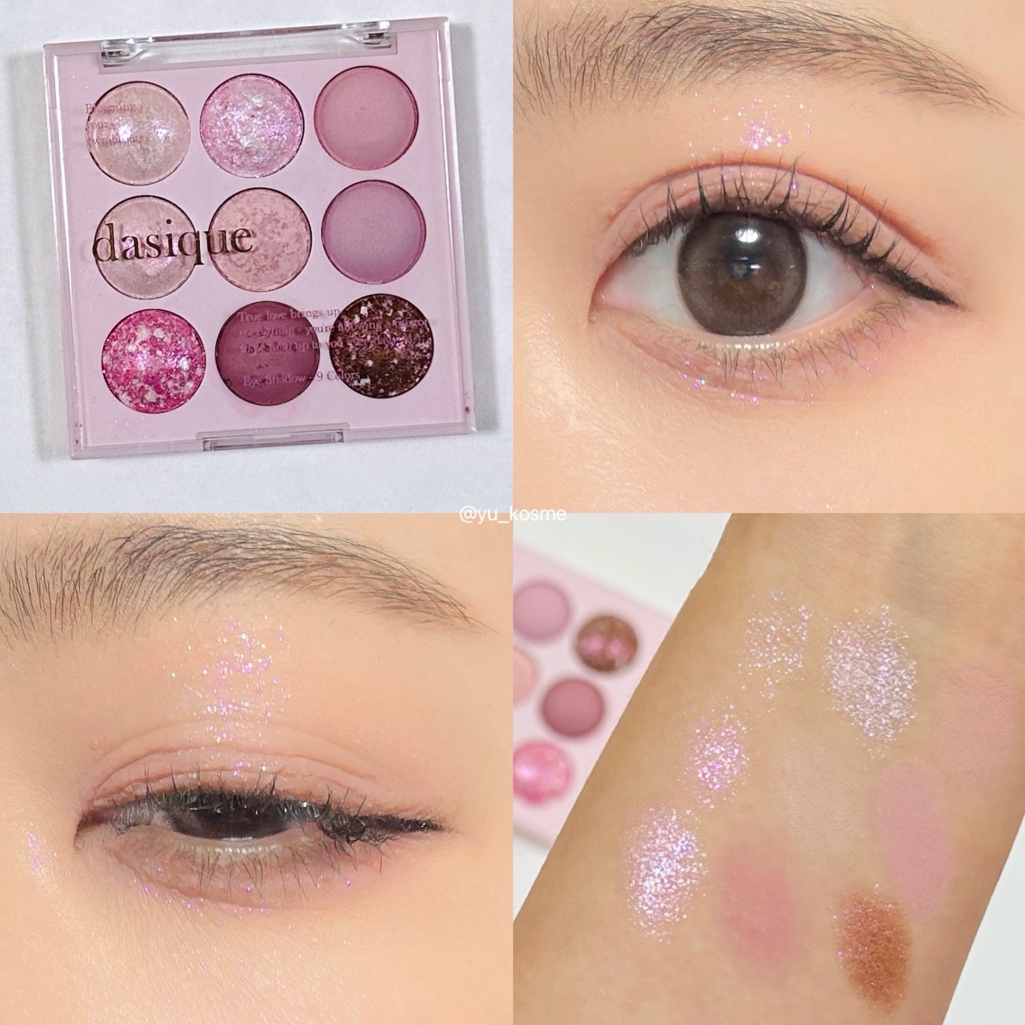 - 【舞台上のバレリーナの繊細な動きと抑制された美しさを再解釈した、dasiqueならではのバレエコアコレクション】 シマー、マット、パールなどバリエーション豊かなテクスチャーで、軽やかにまぶたにフィット。粉飛びしにくく、指先で簡単に美しい仕上がりが叶います。 柔らかいピンクベースから深みのあるシェードまで揃い、1つのパレットで普段使いのデイリーメイクから特別な日の華やかメイクまで幅広く楽しめます。 - 活用しやすいテクスチャーとカラーバリエーションで毎日新しいムードを完成してくれるデイジーク シャドウパレット。 デイリーメイクからポイントメイクまで演出が可能。 感覚的な9種類の色味でムードUP! 多彩でウェアラブルなテクスチャーで高い活用度!