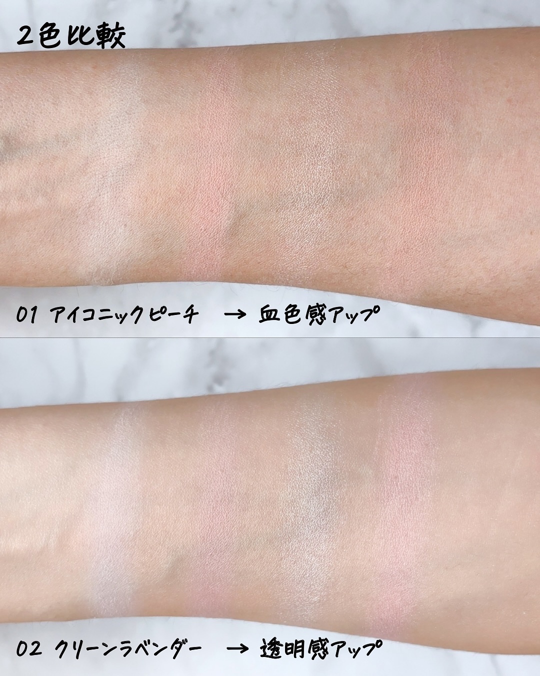 フェイスパウダー、チーク、ハイライトとして使えるマルチパレット🎨 01アイコニックピーチはイエベ向き、02クリーンラベンダーはブルベ向きです。 ノーセバムパウダー(シリカ)を配合しているため、皮脂や毛穴カバー効果も期待できます! ナチュラルな仕上がりでとってもかわいいです! 旅行などでも大活躍してくれそう🤍
