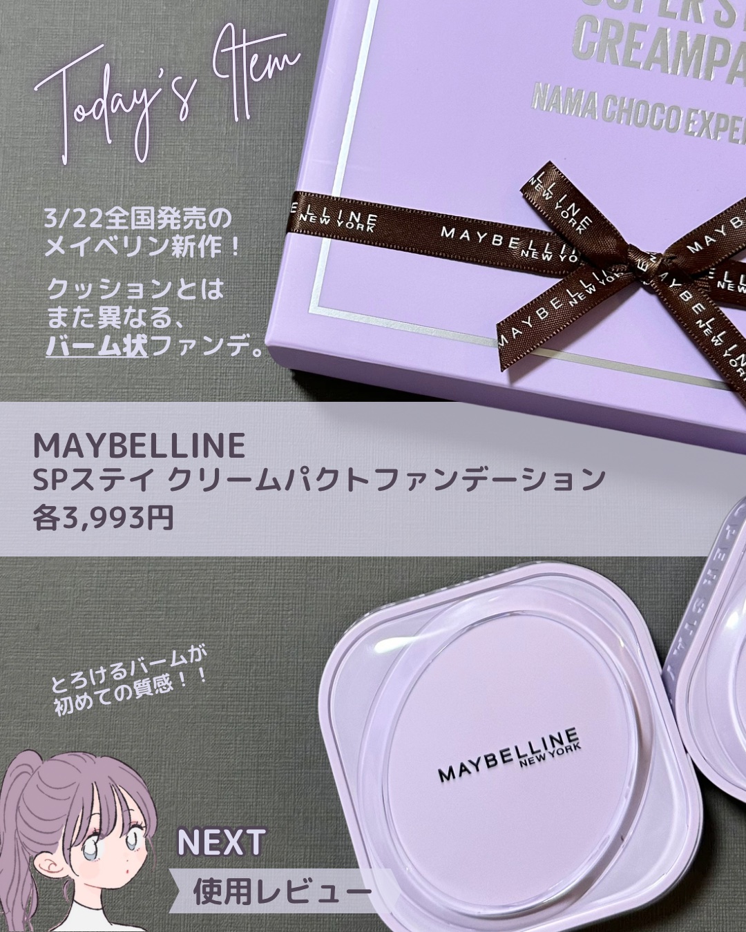 生チョコ感覚ファンデ🍫🆕MAYBELLINENEWYORKメイベリンSPステイクリームパクトファンデーション3月22日発売メイベリンから新登場するクリームパクトファンデーションは生チョコみたいな滑らかなテクスチャ🍫クリームファンデがコンパクト...