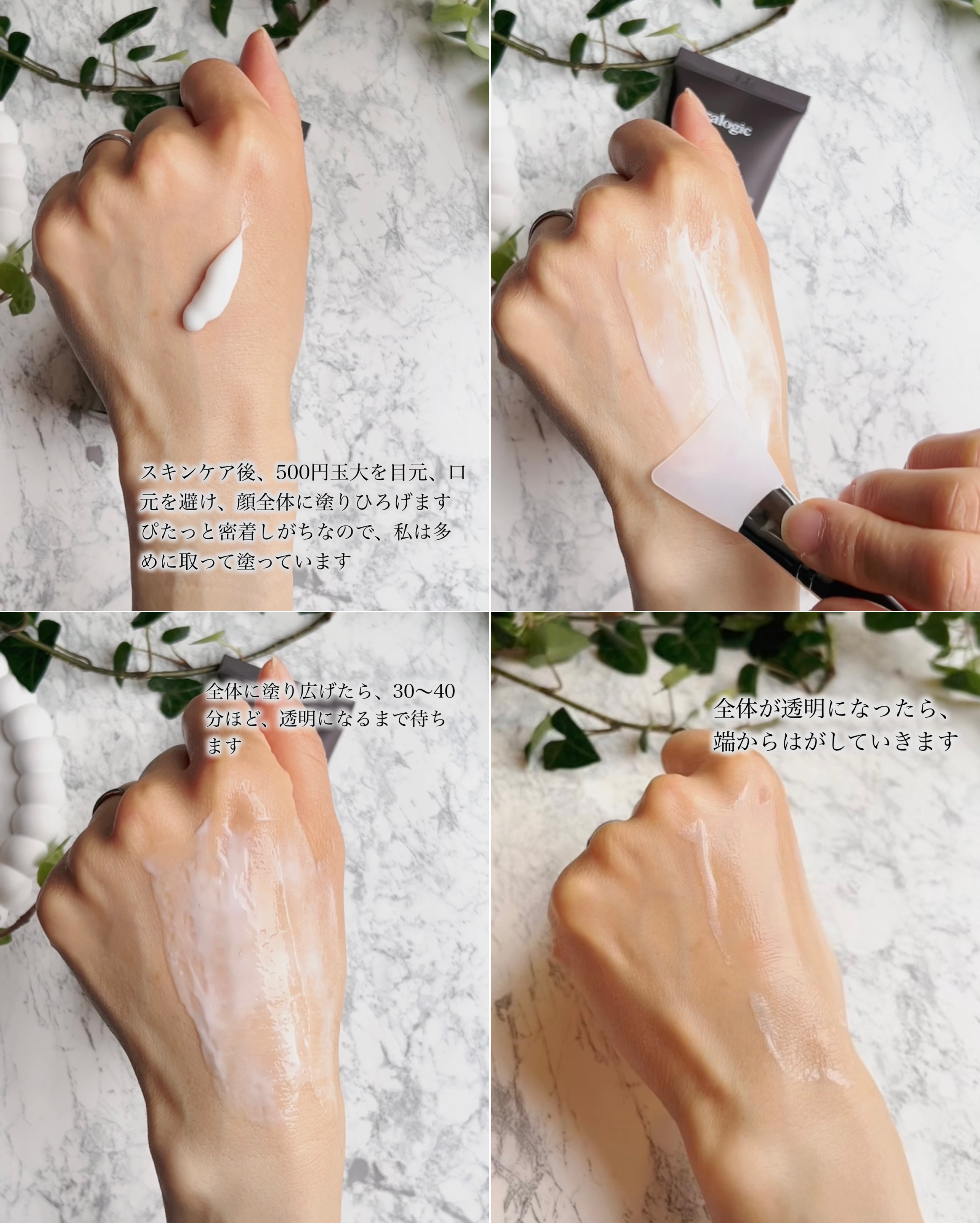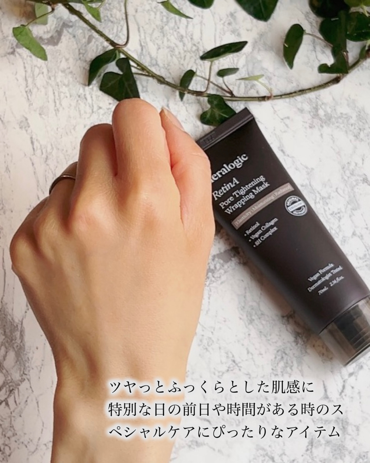 毛穴や弾力ケアには欠かせないレチノールと発酵コラーゲンが配合されているラッピングマスク 塗ってしばらくすると透明になってペローンと剥がせちゃうマスク こっくり濃密なテクスチャーなめらかで伸びもよく肌に密着してくれ保湿感があるのにベタつかないところが良いところ
