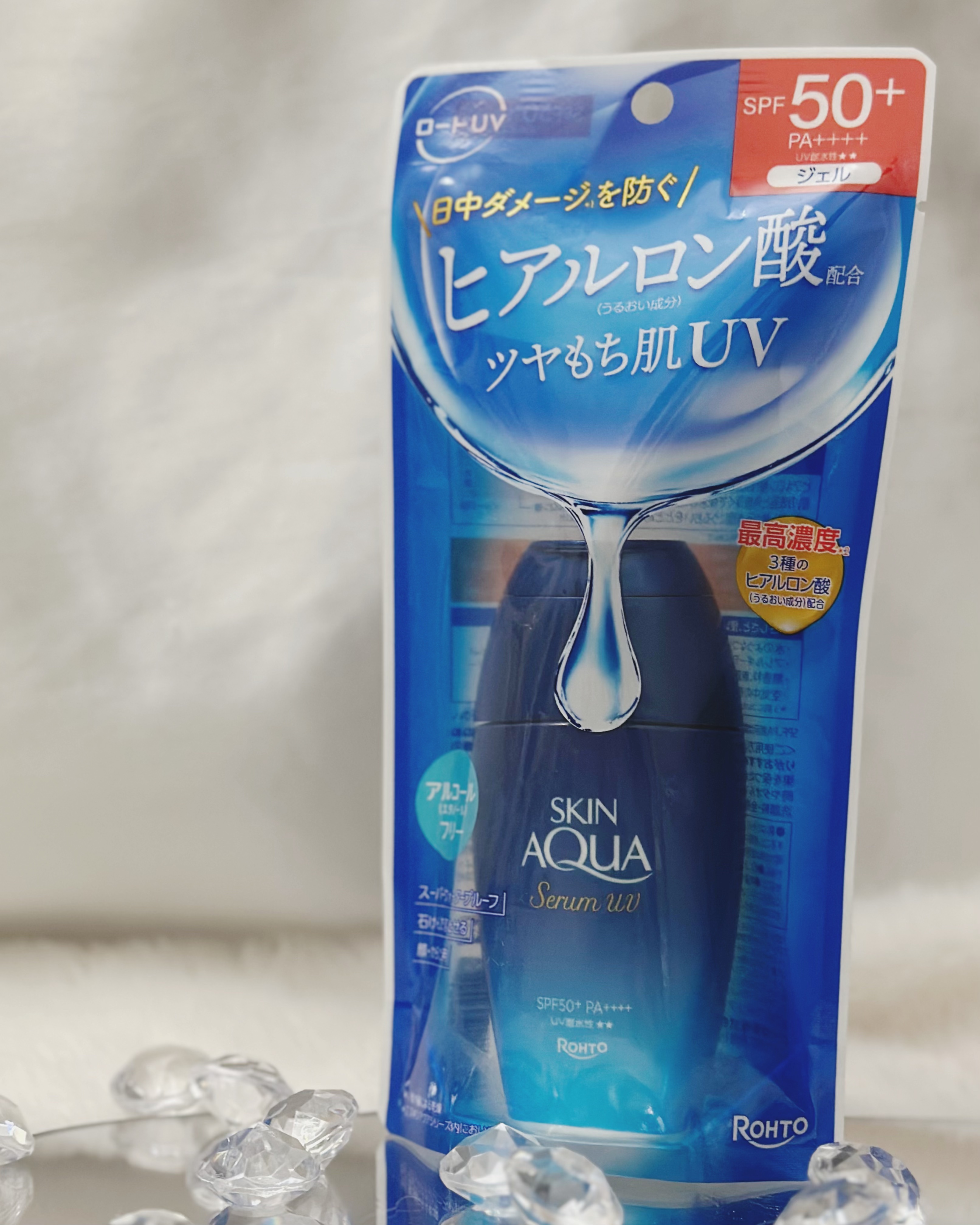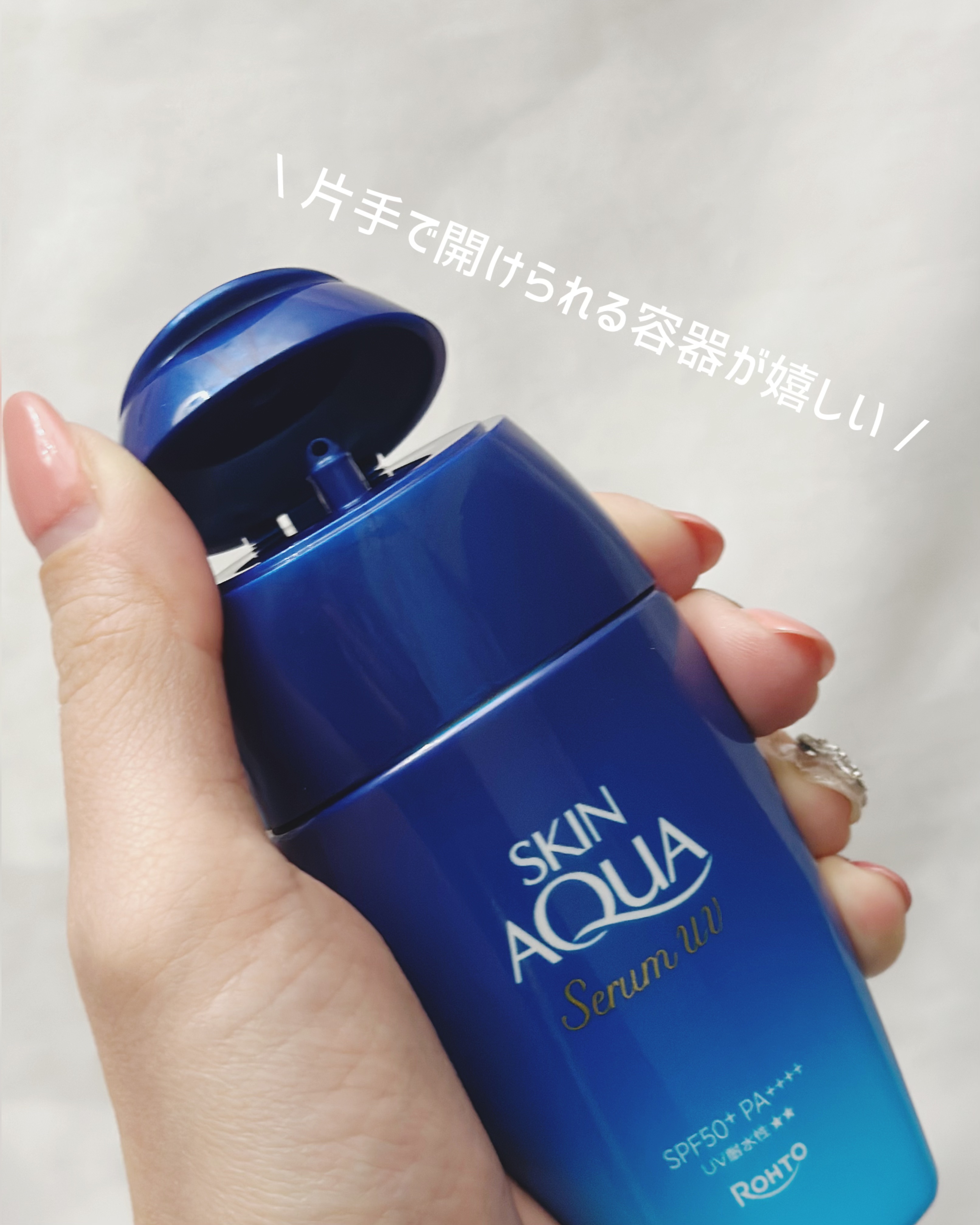 スキンアクアヒアルロンセラムUVSPF50+/PA++++ヒアルロン酸*配合ツヤもち肌UV*うるおい成分みずみずしい塗り心地で白浮きせずに使えますスキンアクアの日焼け止めは毎年使ってるお気に入りだけどこちらはワンタッチキャップになっててより便...
