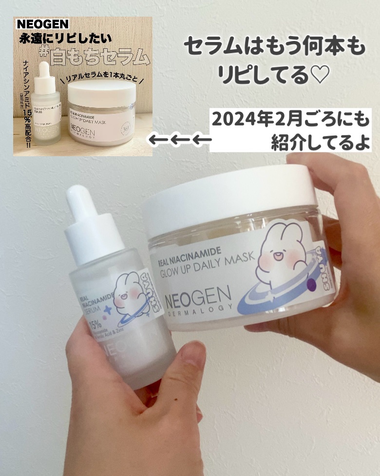 #PRNEOGEN大人気の白もち肌セットが韓国人気キャラクターSHUYAとコラボした限定パッケージで販売中だよー🤍🤍ナイアシンアミド15%も含まれたセラムにセラム丸々1本入ったマスク✨️ほんとにモッチモチな肌触りで大好き💓#NEOGEN#...