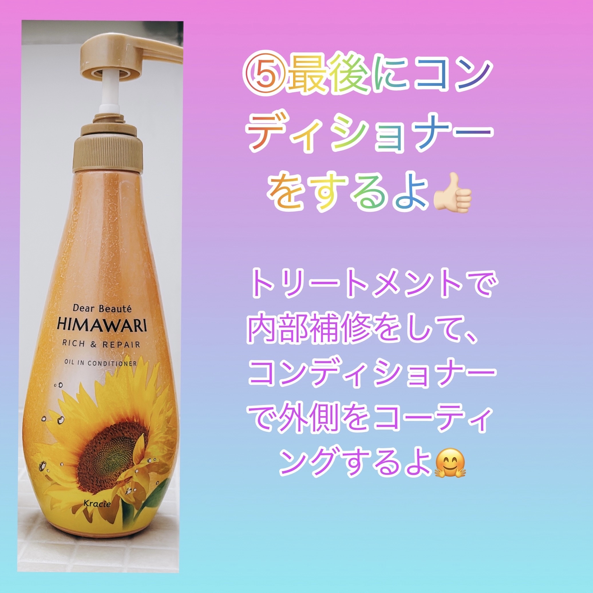 ディアボーテさまの🌻オイルインシャンプー🌻オイルインコンディショナー使わせていただきました!シャンプーは︎︎︎︎、透明な見た目でなめらかなとろみのあるテクスチャー!泡立ちが良くふんわりとした濃密泡でした!私は髪が細くパサつきが気になるのでうる...