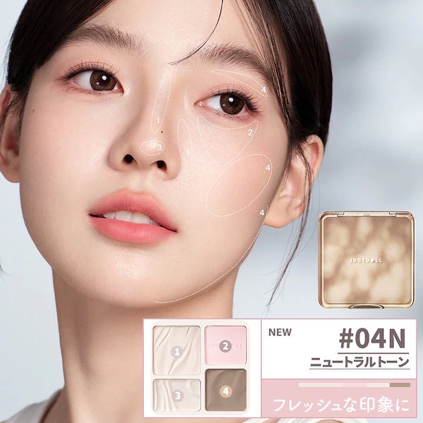 【JUDYDOLL メリハリマスターパレット#04Nニュートラルトーン】このパレット一つでシェーディング、ハイライト、血色感まで✨発色は控えめでぼかしやすい粉質は柔らかくて肌に馴染みやすいのも◎ただ、④の発色はもう少しあっても良いかなぁ?と思...