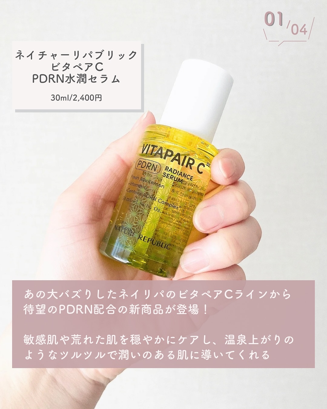 ・@naturerepublic_jpビタペアCPDRN水潤セラム・ネイリパ人気シリーズ、ビタペアCラインから発売されたセンテラPDRN配合セラム◎敏感肌や荒れたお肌の基礎を穏やかに整える💡柑橘系のさっぱりとした香りがするよ🍋♡...