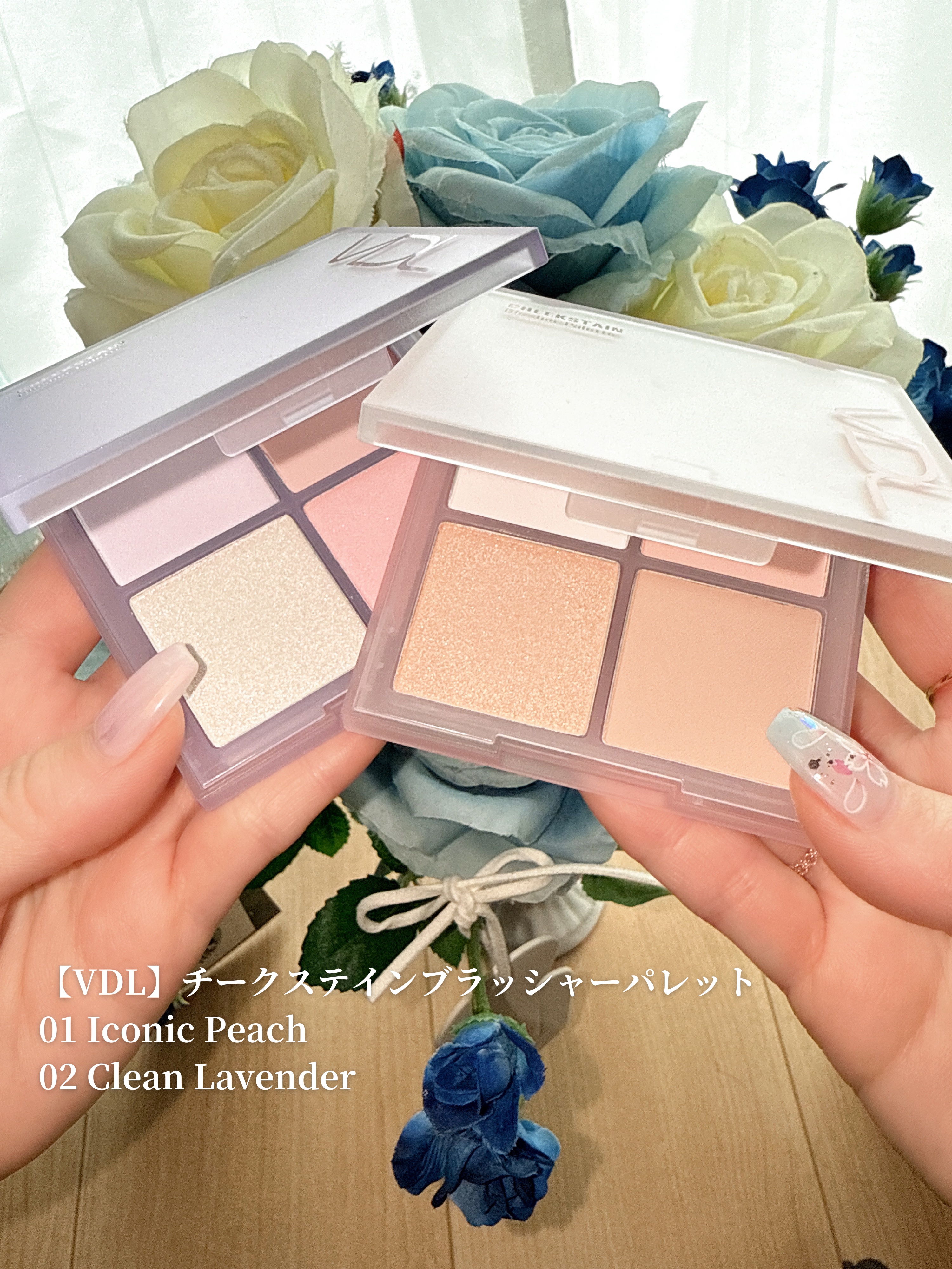 - VDL チークステイン ブラッシャーの人気カラー01 バウンシング ピーチと08 モーブ ヘイズに合わせたパウダーカラー、チークカラー、ハイライターカラーが揃っているパレット! 発色は뽀용(ぽよん)チーク*のまま! 各パーソナルカラーに合わせて作られたチークパレットなので自分に似合うパレットを選びやすいです! *뽀용(ぽよん)とは韓国語で白みたっぷりのパステルカラーを表現した言葉です。
