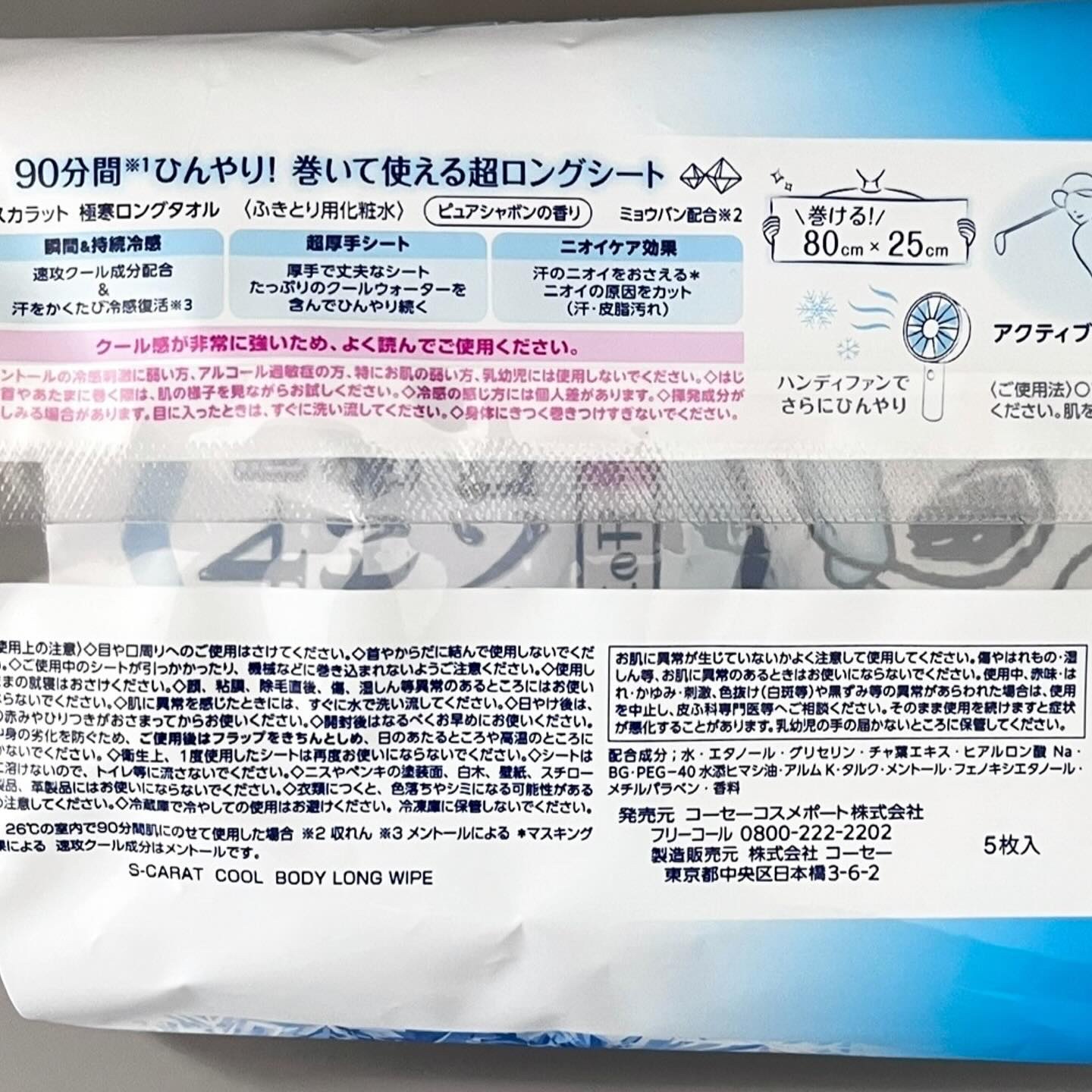 瞬間-4℃タッチ❄️ ひんやり90分間*持続💨 超大判!80×25cmのロングサイズのシートは首に掛けたり肌をふきとることで、気になる汗のニオイもおさえる💪 メントールによって、ひんやーり冷たさが感じられるから夏の活躍が期待できそう☀️