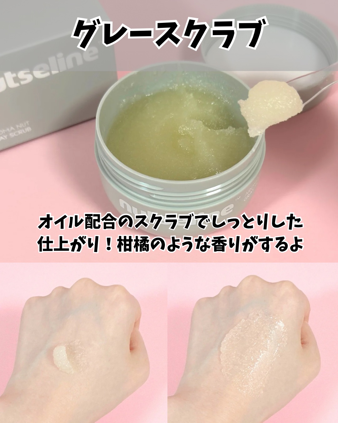 1番お気に入りになったのがグレースクラブです✨️ オイル層とスクラブがはっきり分かれていて日によってのケアがしやすいなと感じました! 結構ザラザラしたスクラブですがすぐに溶けてオイルっぽくなります!!! お世話抜きで一軍スキンケア入りになりました👏 ワンランク上のシリーズだなと感じました・それぞれ香りが比較的上品で私は好きです