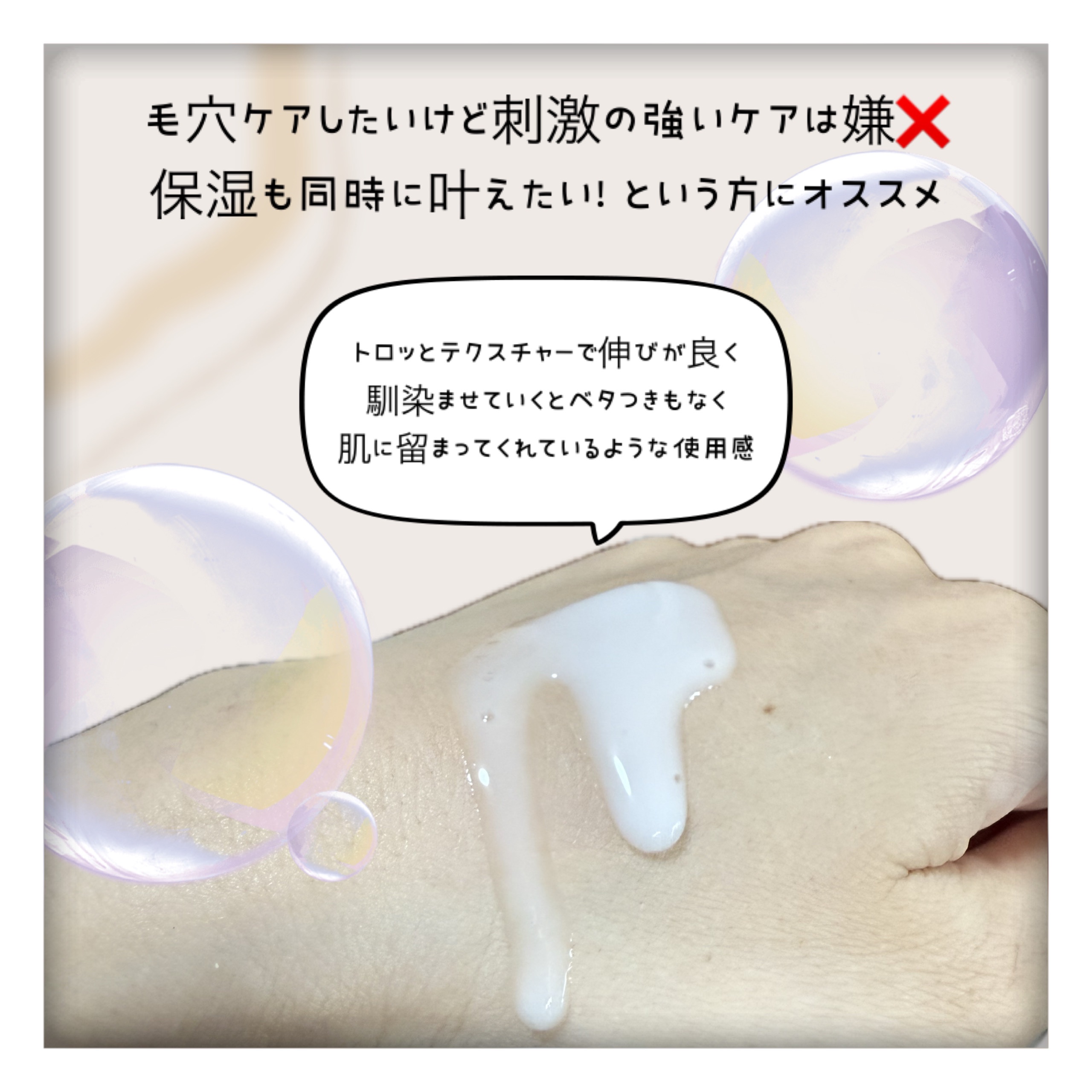 | とろみのあるテクスチャーなのに、すーっと肌に馴染んでくれます。メイク前にも使いやすいです | 詳細を見る | ||