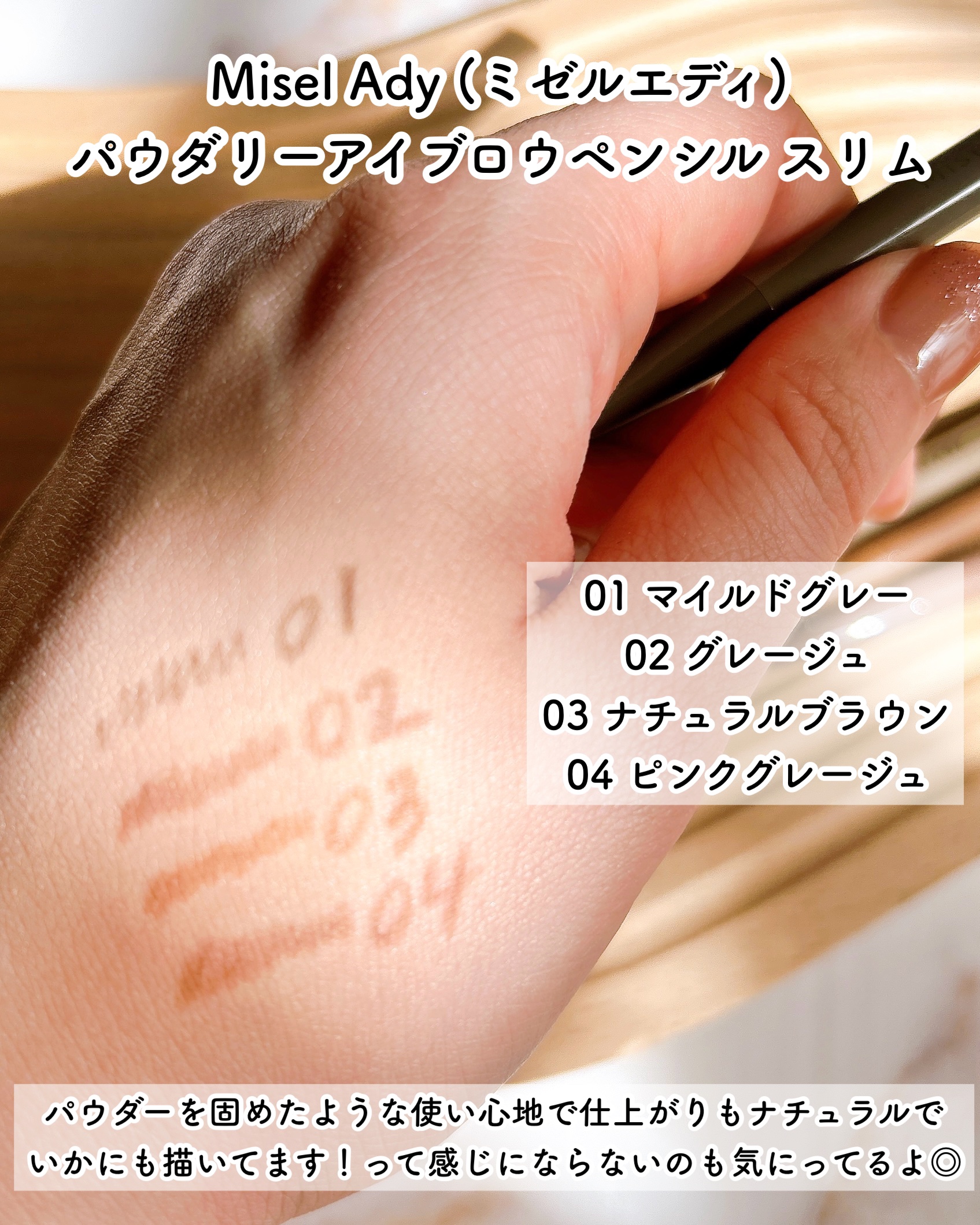 ミゼルエディパウダリーアイブロウペンシルスリムを使用してみました✨0.84mmの超極細のアイブロウペンシルで、眉毛メイクが苦手な方でも使いやすく細いのに折れにくいです◎ササッと使える繰り出しタイプで反対側はブラシになっています😌パウダーをペン...