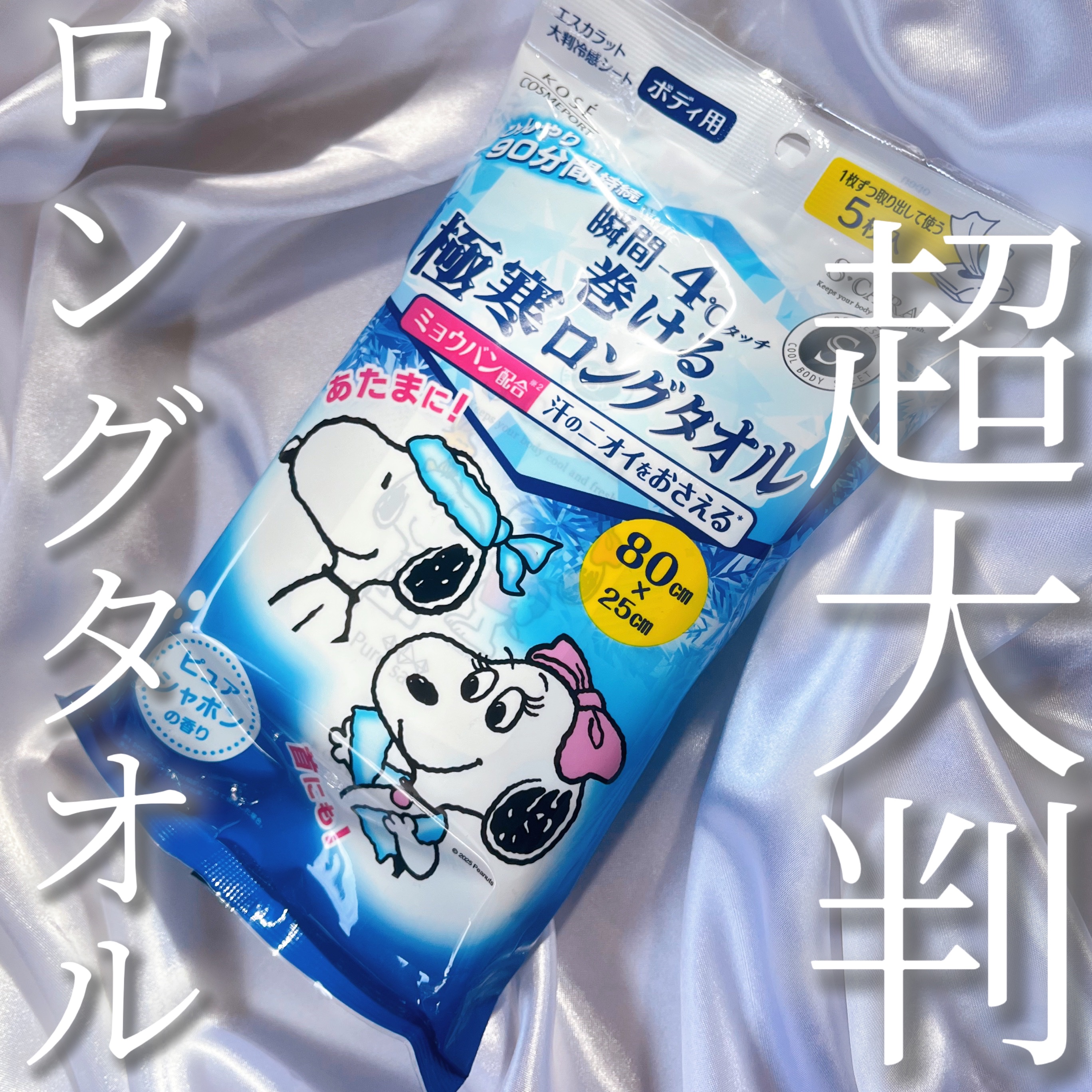 - 瞬間ー4℃タッチ!ひんやりが90分間*持続する極寒ロングタオル。 フェイスタオル級の超大判ロングサイズで、首や頭に巻いて使えるシートです。 ピュアシャボンの香り。 *26℃の室内で90分間肌にのせて使用した場合