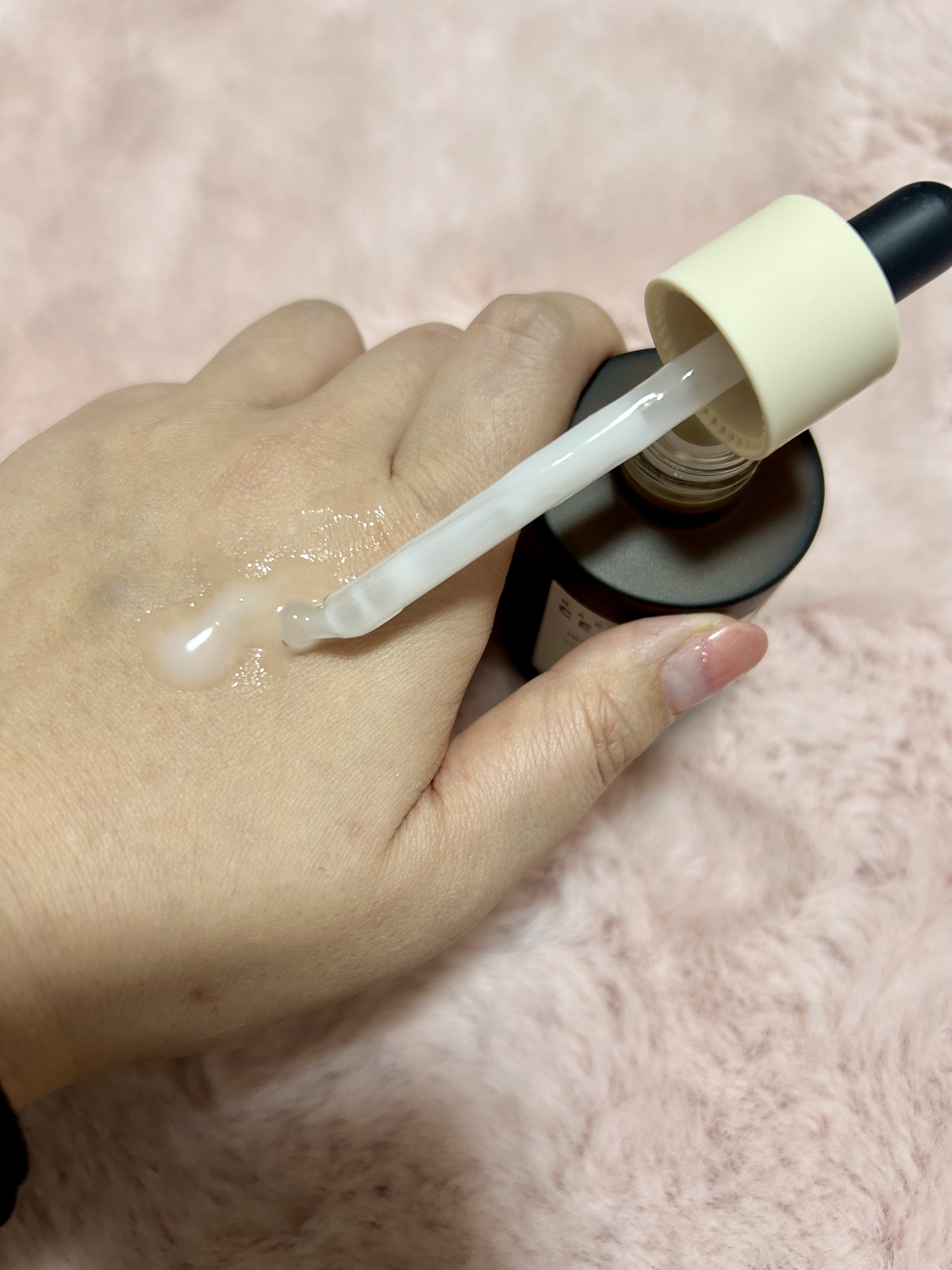 乾燥肌の私にぴったりの美容液に出会えました! テクスチャーは乳液のようなこっくりしたタイプですが肌に馴染ませると伸びが良く ベタベタした感じが無くうるおいが浸透している感じがします。