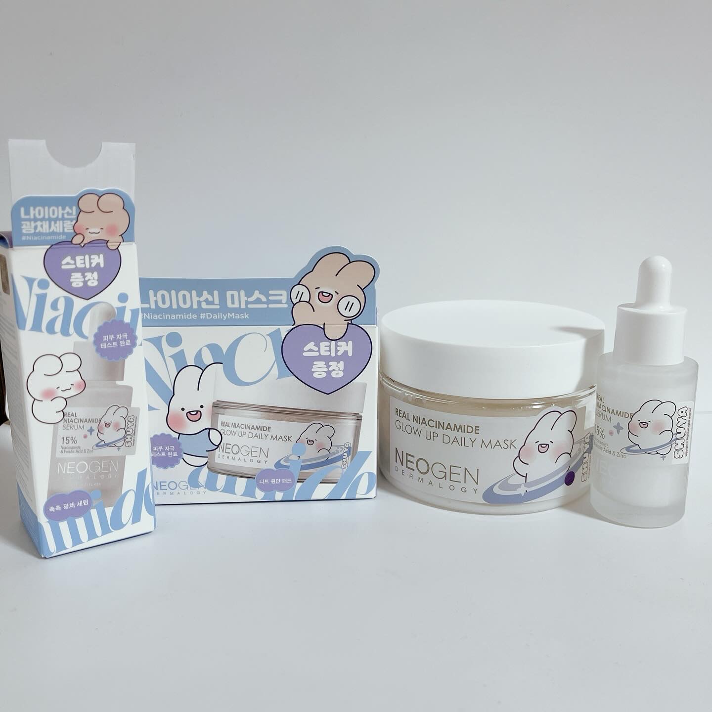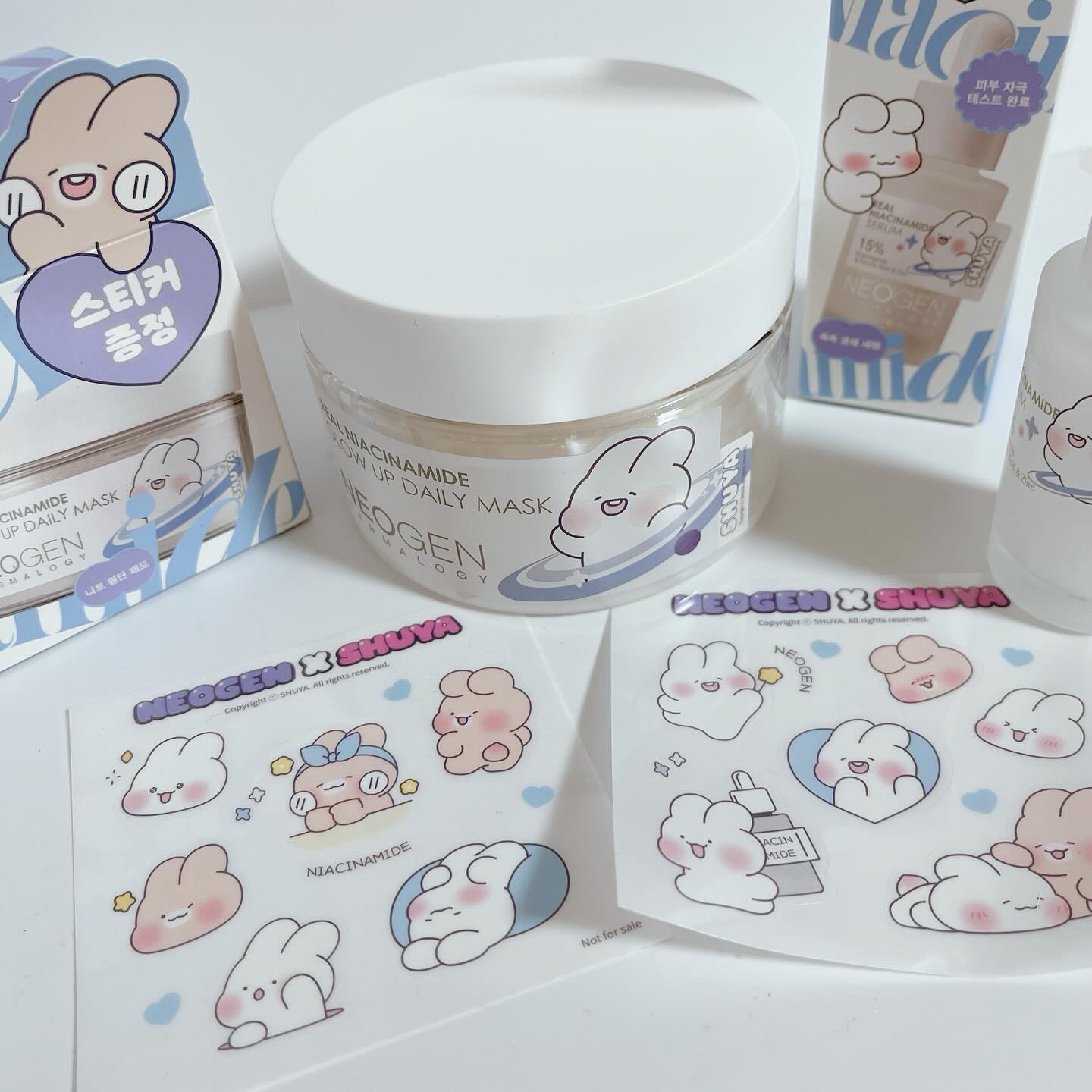 #PRNEOGEN大人気の白もち肌セットが韓国人気キャラクターSHUYAとコラボした限定パッケージで販売中だよー🤍🤍ナイアシンアミド15%も含まれたセラムにセラム丸々1本入ったマスク✨️ほんとにモッチモチな肌触りで大好き💓#NEOGEN#...