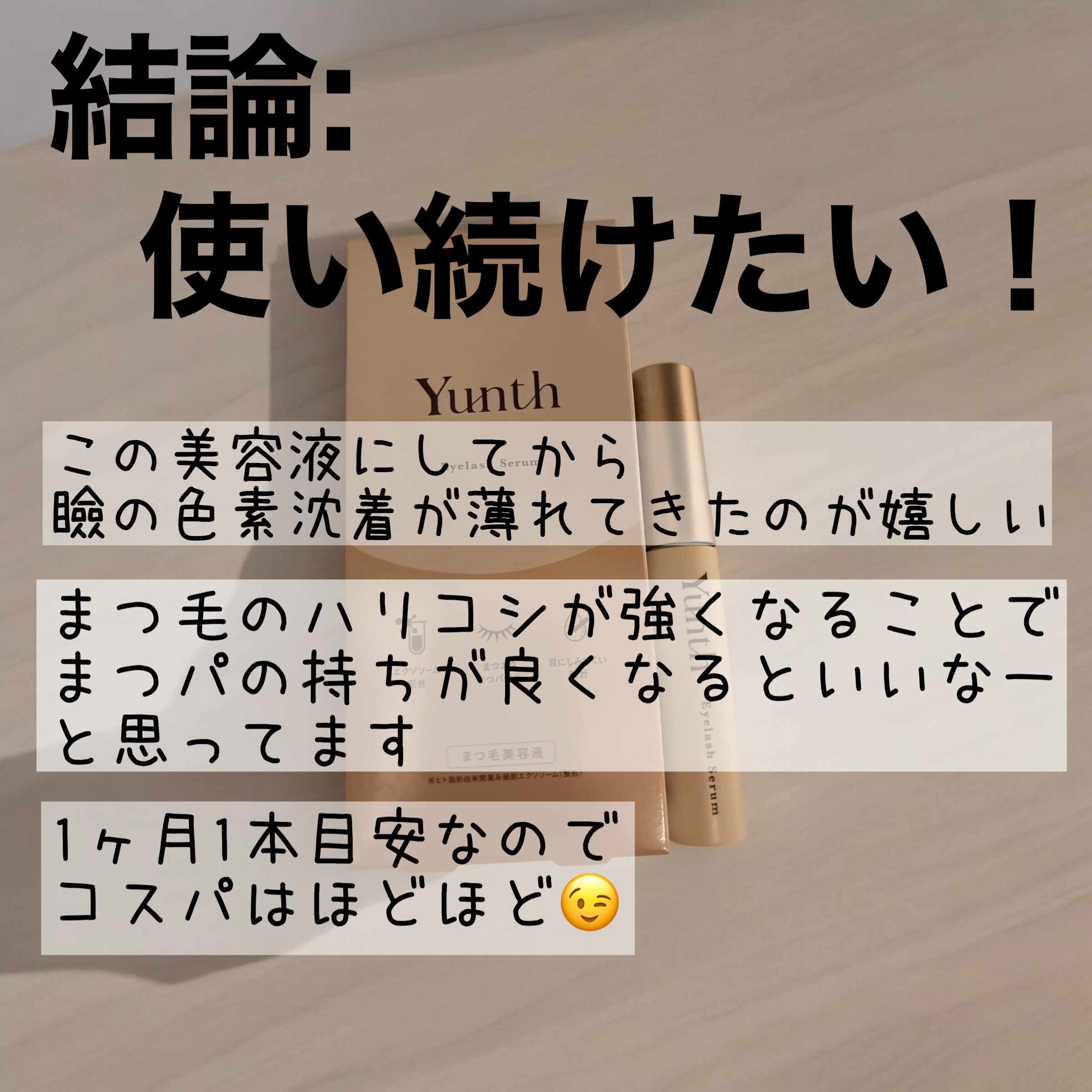 生ビタミン美白美容液で有名な「Yunth」のアイラッシュセラム(まつ毛美容液)があるのをご存知ですか?まつ毛伸びるよ〜で有名なまつ毛美容液使ったことありますが、たしかに伸びるが、ちょっと目に入ると私の場合、乾燥が激しくなったりします。色素沈着...