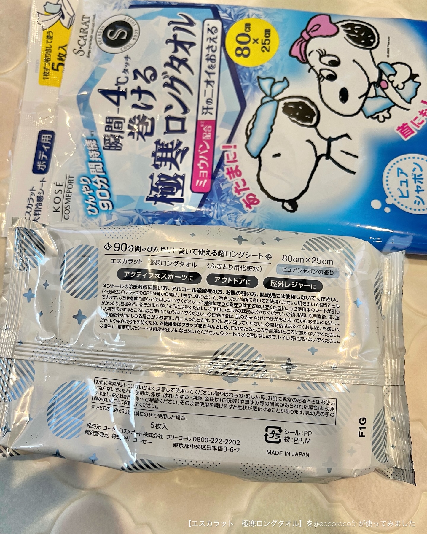 - 瞬間ー4℃タッチ!ひんやりが90分間*持続する極寒ロングタオル。 フェイスタオル級の超大判ロングサイズで、首や頭に巻いて使えるシートです。 ピュアシャボンの香り。 *26℃の室内で90分間肌にのせて使用した場合