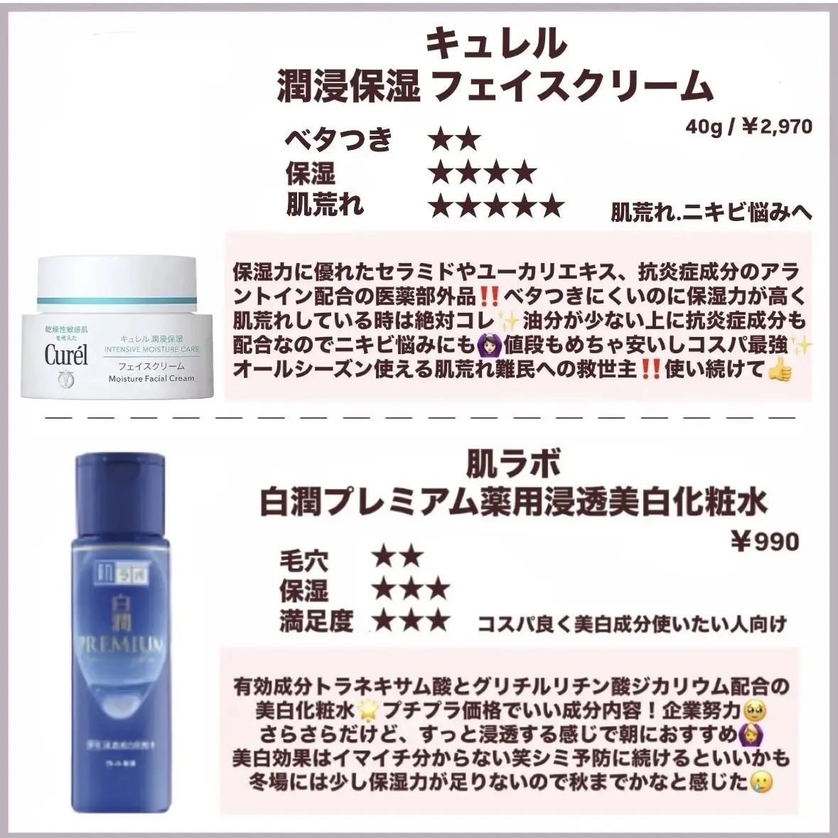 最近は韓国スキンケアもランクインし始めましたね‼️ 個人的にはバリア機能に優れた商品が多いかなと思います‼️ 特にソフィーナipはバグりすぎてるし笑 企業努力を感じます🥹 冬にさしかかり、乾燥やバリア機能低下が気になる時期になったと思うのでぜひクリーム選びの参考にしてくださいね🐰