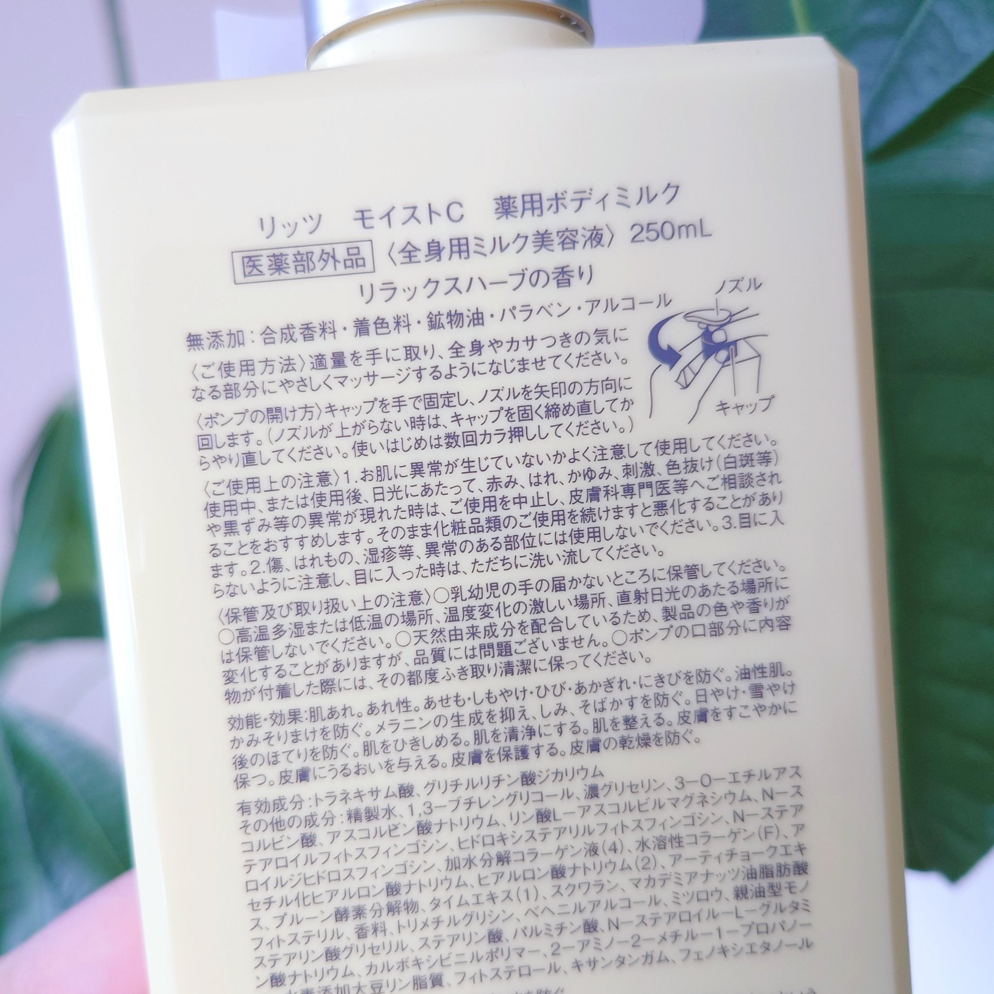 商品詳細情報リッツ モイストC 薬用ボディミルク リラックスハーブの香り