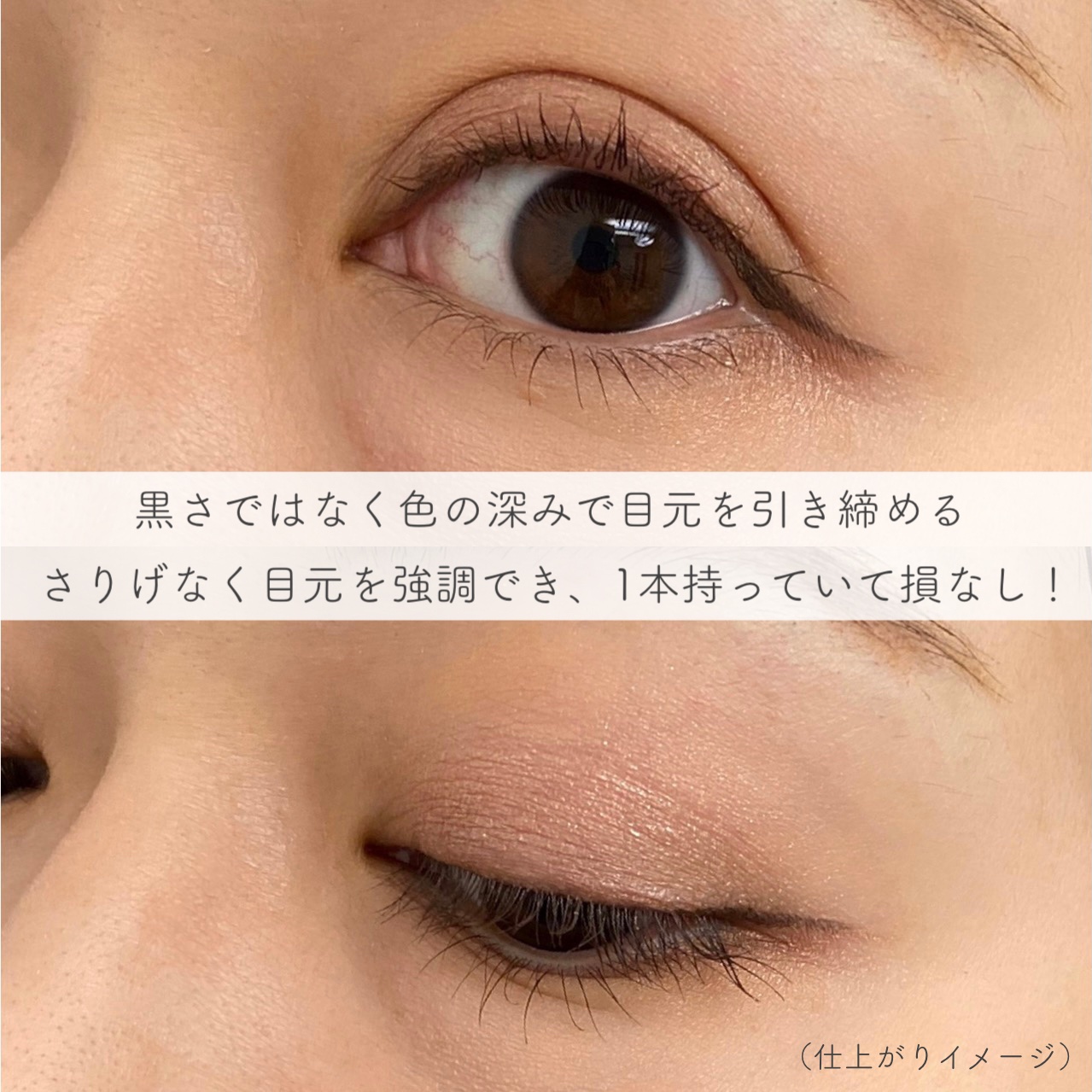 - 筆先までずっとなめらか、目尻で感動するリキッドアイライナー。 必要な量が肌にのる新設計で、まぶたの上をすべるような、滑らかな描き心地。しなやかでコシのある筆が、筆圧のコントロールを容易にし、太いラインも細いラインも思い通りに仕上げます。水、汗、涙に強いウォータープルーフタイプなのに、通常洗顔で簡単オフ。肌に色素が残らない顔料を使用。5種類の美容液成分を従来品の200%配合し、メイクしながら目元ケアまで。 ●ブラウンブラック ※2020年9月12日 バラエティショップ先行発売 ●漆黒ブラック ※2020年12月頃発売予定 ●ナチュラルブラウン ※2020年12月頃発売予定 ●シフォンブラウン 「毎日メイクに透明感と抜け感」 ブラウンでも、グレーでも、ベージュでもないニュアンスカラー。 自然な印影で素の目元を際立て、頑張りすぎない、ふんわりとした目元に。 ●アプリコットブラウン 「じゅわっと血色感。 肌に馴染むおしゃれカラー」 温かみのあるアプリコットがじゅわっと滲む血色感を目元に演出。 肌馴染みが良いので、カラーライナーに抵抗がある方もブラウンの延長線上で楽しめる、使いやすい色味です。 ”ちょっとオシャレ”な空気感を演出するカラー。 ●ピンクショコラ アイライナー 「ピンクが溶け込む濃厚ブラウン」 肌馴染みが良く、目元にじんわり血色感をプラス。 さりげなく女性らしさが加速するようなカラー。 ●ピスタチオラテ (2022年7月29日(金)発売) 「“目尻”に抜け感アクセント」 肌に馴染むのに映える絶妙なグリーン。 トレンドカラーに“くすみ”と“抜け感”をプラスしたまろやかな発色。 ●マスタードブラウン 「“イエロー”が揺れる、大人の洒落色」 (2022年7月29日(金)発売) まるで太陽のような暖かさを感じる新しいブラウン。 ほんのり感じるイエローでメイクが一気に垢抜ける稀有な色。 ●シフォンピンク(2023年2月10日発売) 「ふんわり柔らか"まろみピンク"」 甘くなりすぎない青みニュアンスで目元の透明感UP。 目元を引き締め、ピンクメイクにありがちな腫れぼったさを解消。 ●ミルクカプチーノ(2023年4月21日発売) まろやかな深みの“優しい締め色” どんなメイクにも合わせやすいカラー。 自然な陰影でさりげなく目幅を拡張します。 ●グレーカシミア(2023年10月1日発売) ブラウンがほんのり溶け込んだ、暖色グレー まろやかな発色で、パーソナルカラーを問わず肌に馴染む 目元の陰影になりすまし、抜け感と目力を欲張りに叶える ●ダークフィグ(2024年6月1日発売) するする”なめらか。描きやすいのに、落ちにくい。 クッキリ可愛いほの甘ダークブラウン ●ピーチモカ(2024年8月1日発売) ふわっと自然に盛れる“桃色ブラウン” ほんのり血色感で目元にうるみ感を演出 ●スターダストブラウン(2024年12月11日発売) キラッと繊細に輝く''星屑ブラウン'' 透け感のあるダークブラウンの色味とラメの輝きが、目元に艶のある立体感を演出 ●チャコールモカ(2025年4月10日発売) 目元を締める''深みグレージュ'' 黄みや赤みに偏りすぎない絶妙な色設計で、自然に目元を強調