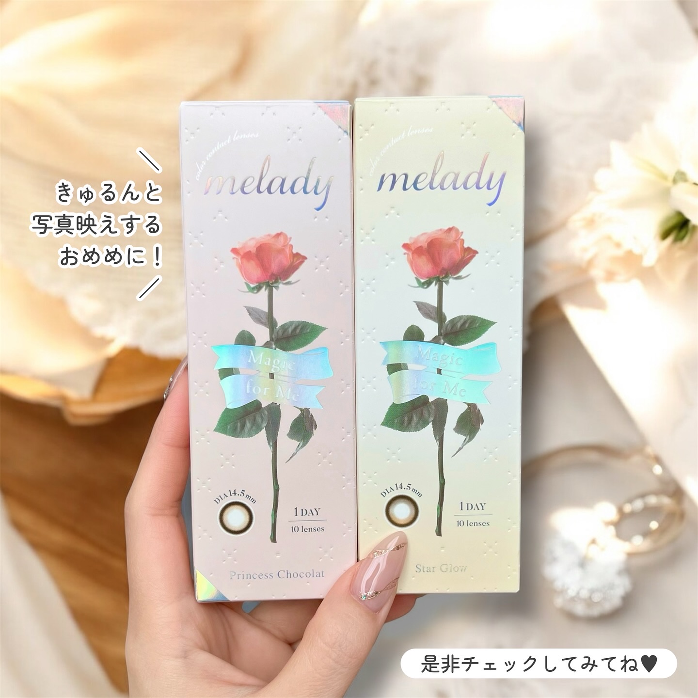 meladyから待望の新色が登場!しっかり盛れるブラウン系の太フチレンズが2種類✨中でも「PrincessChocolat(プリンセスショコラ)」は、太フチ×ショコラブラウンの絶妙な組み合わせがかわいいカラコン🍫くっきりめのフチが瞳を強調しつ...