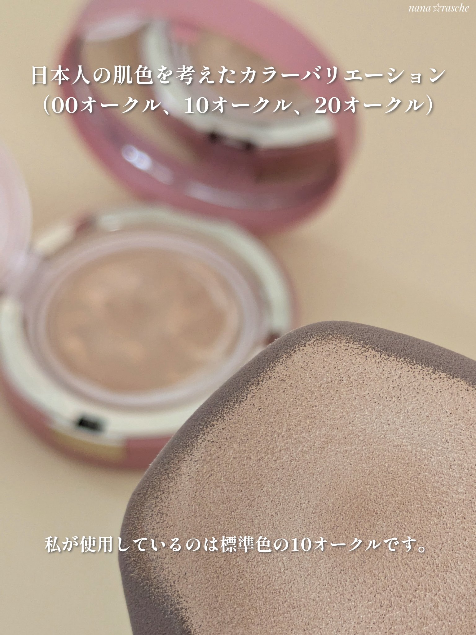 皮脂コントロール成分**配合で、テカリや化粧崩れを防ぎ、さらさらの美しい状態が持続するロングラスティング処方。 クリアで粉感を感じさせない軽やかなタッチのセッティングパウダーです。 私が使用しているのは繊細につやめくゴールドベージュの001 Translucent Glowです。 繊細なパウダーは粉感、存在感がなくふんわり軽やかなつけ心地が◎ ベースメイクの色や質感を邪魔をせず、ナチュラルな艶と立体感のある肌にみせてくれるのが気に入っています♪