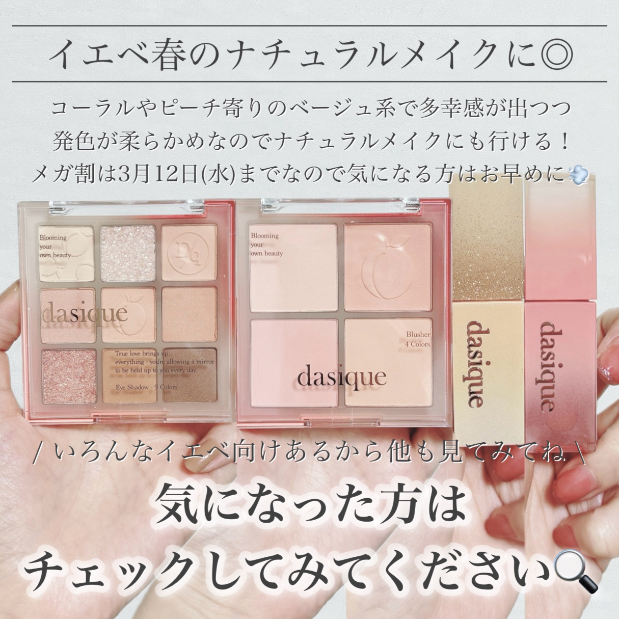 デイジーク6月のメガ割おすすめアイテム💖☑︎シャドウパレット30チェリーブロッサム絵の具のようなパケが特徴でしっとりした粉質がとても使いやすい✨☑︎ブレンディングムードチーク18ミルキーアプリコットクリームチークだけどベースメイクがヨレにくい...