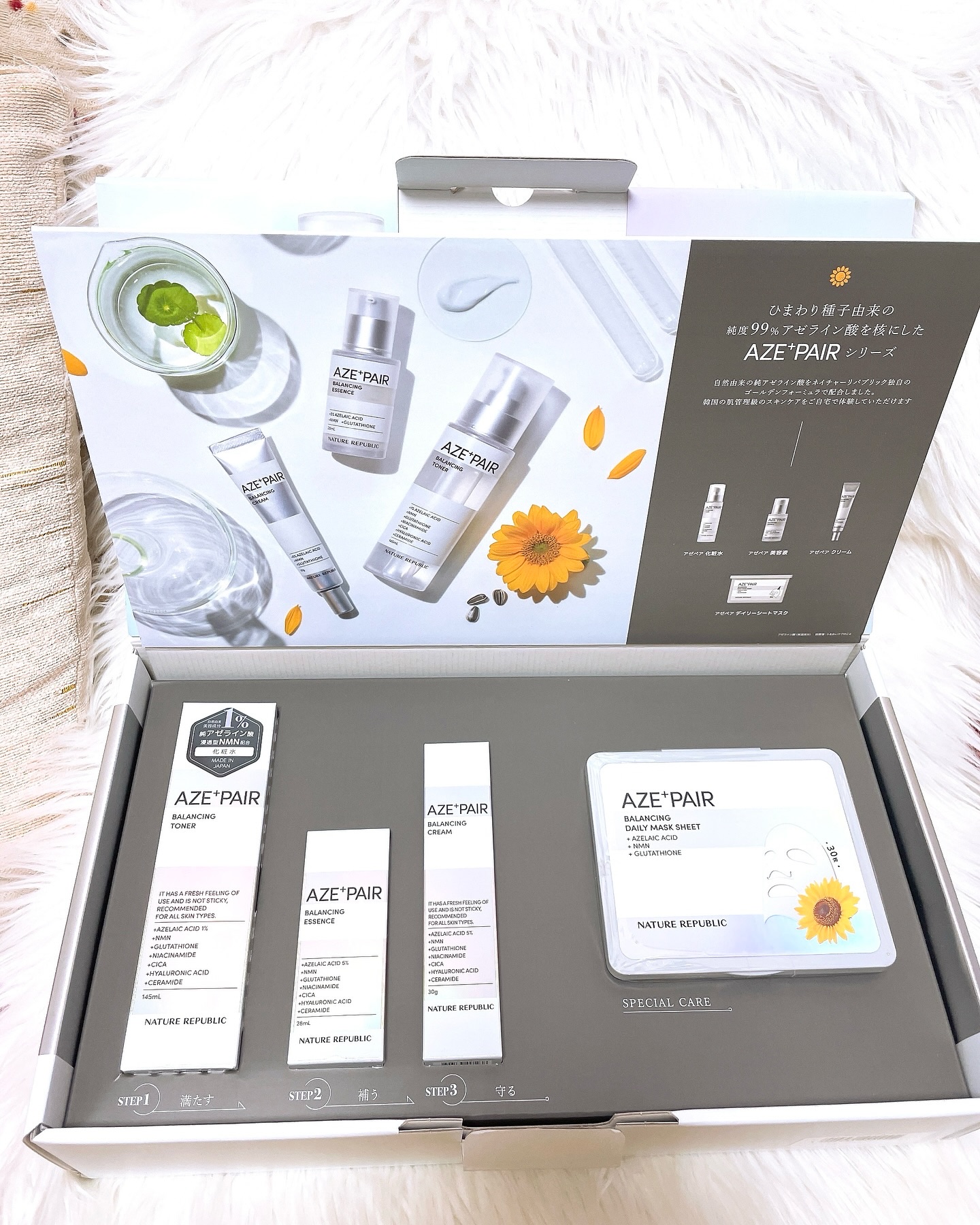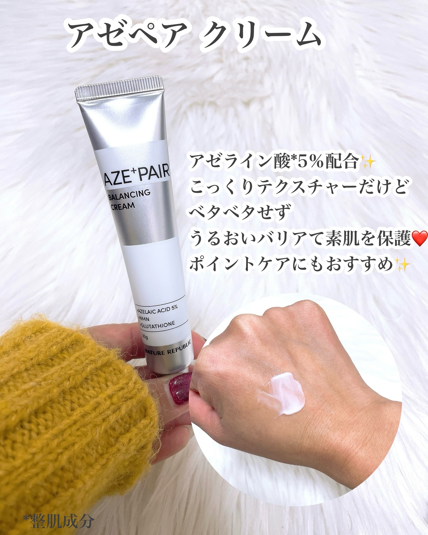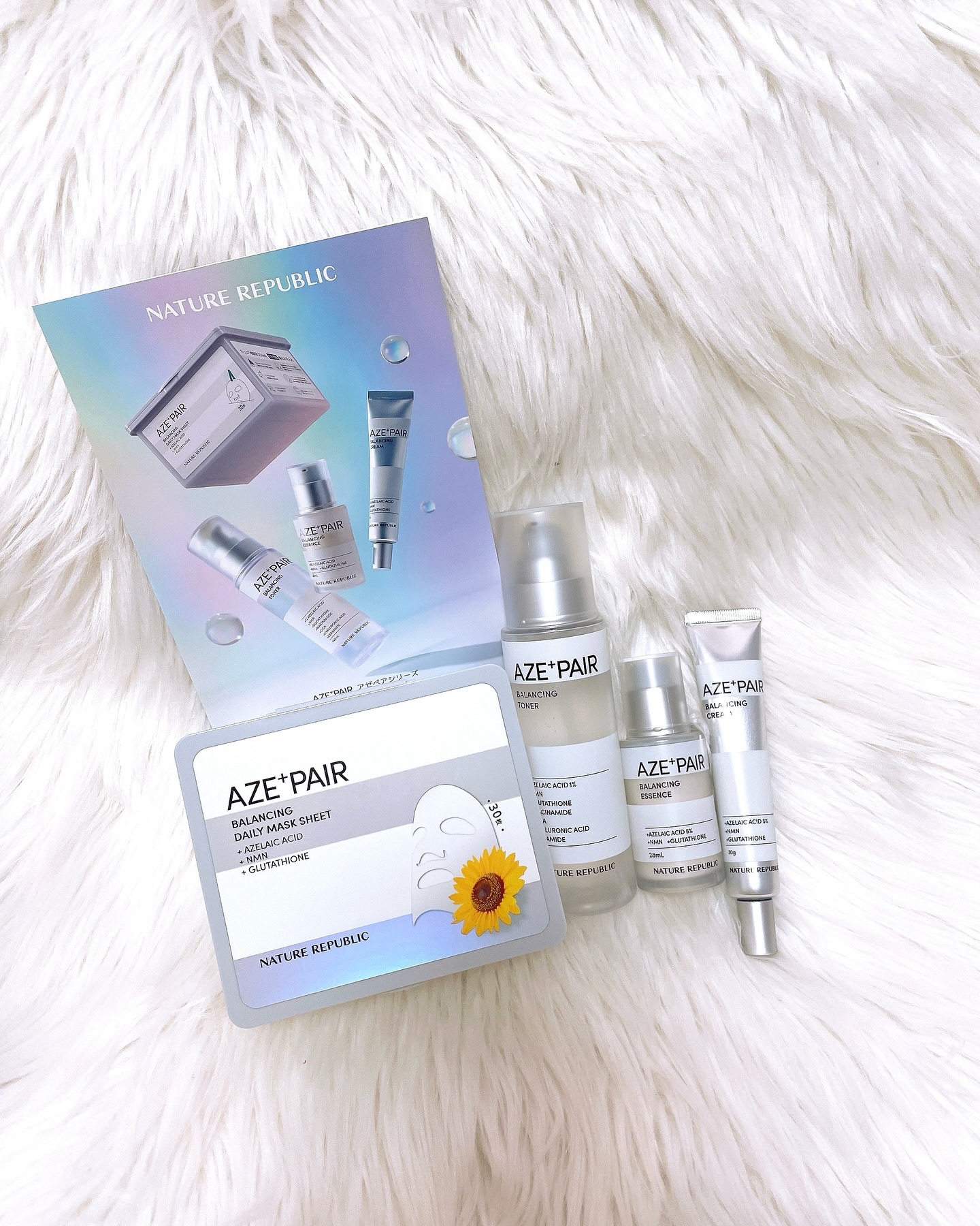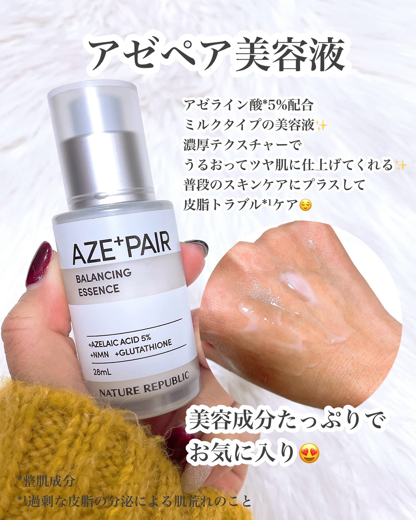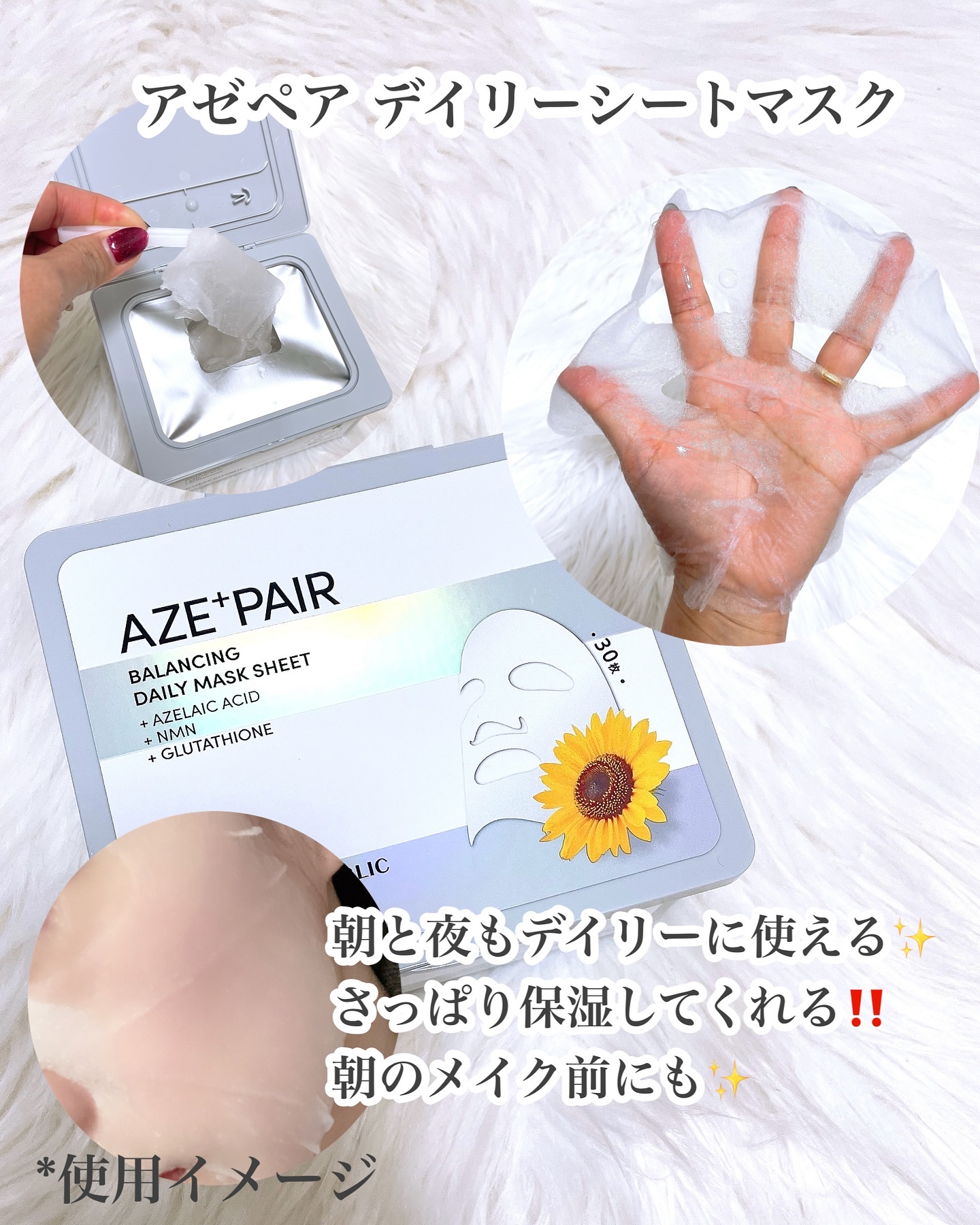 大人気のAZE+PAIRシリーズに30枚入り大容量シートマスク新登場! \純アゼライン酸5%🌻/ひまわり種子由来の純度99%アゼライン酸(保湿成分)+浸透型NMN(ニコチンアミドモノヌクレオチド)配合美容液。 うるおいと美容成分をW補給する濃密なミルクタイプで伸びが良くうるおってツヤ肌になるよ🌟🌟🌟