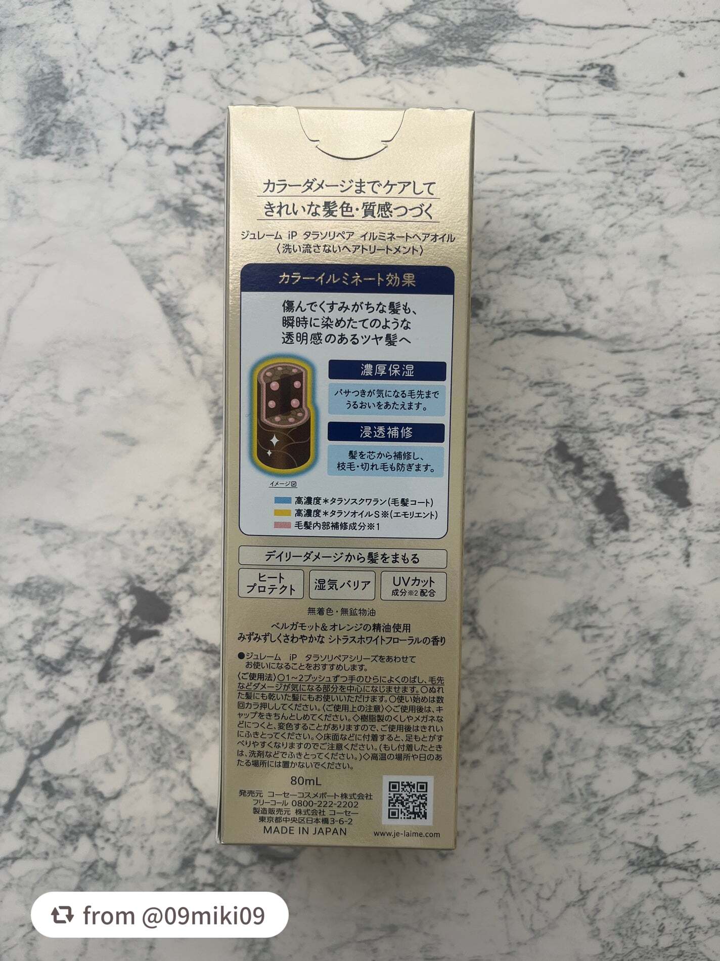 商品詳細情報Je l'aime iP タラソリペアイルミネートヘアオイル
