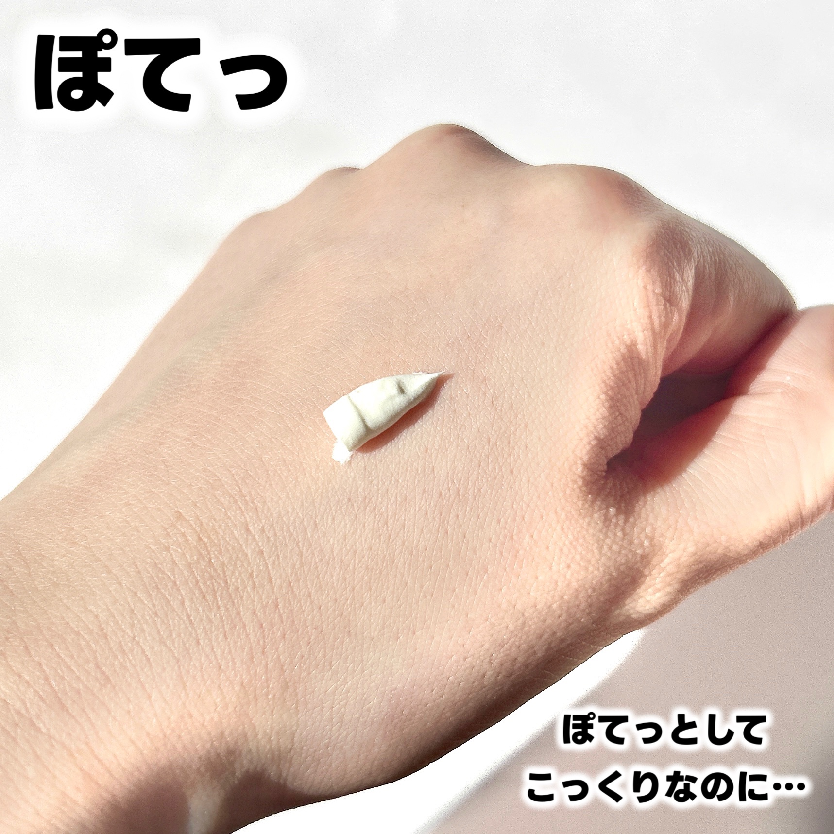 ポテさらUVクリーム🤍手に出すとポテっとしてるけど、広げるとサラサラになる不思議なテクスチャーで、日焼け止めなのに全然ベタつきがないの、ても汚れなくて、メイクしやすい💡フラットな肌みたいになるからファンデーションを重ねやすかったよ!自然なトー...