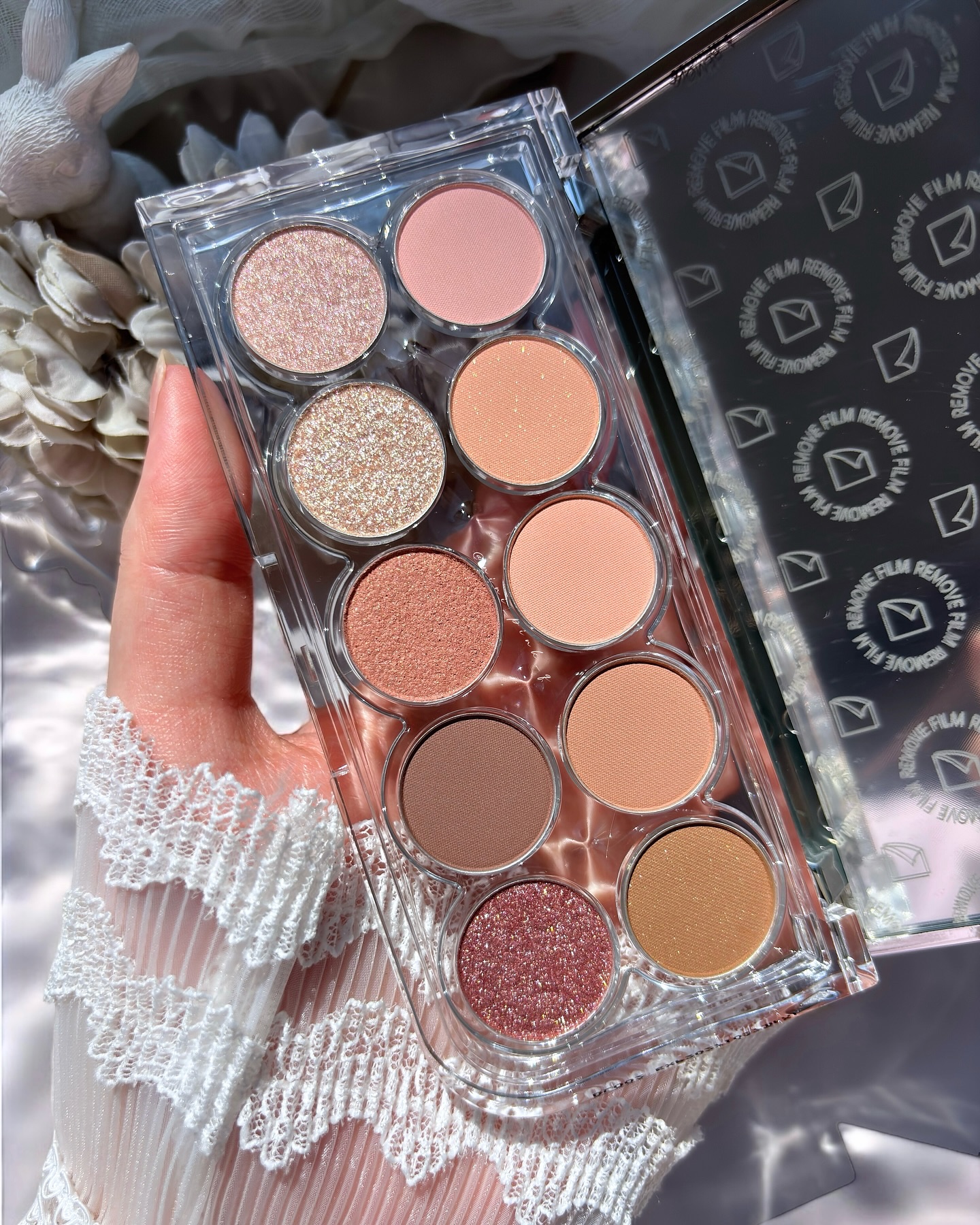 10 in flowはまさに夜桜パレット 深い夜空の月明かりで反射した川に 淡い桜の花びらが浮かんでるような。 儚くてエモい雰囲気。 ピンクのくすみがそこまで強くないから 意外と沈みにくいパレット。