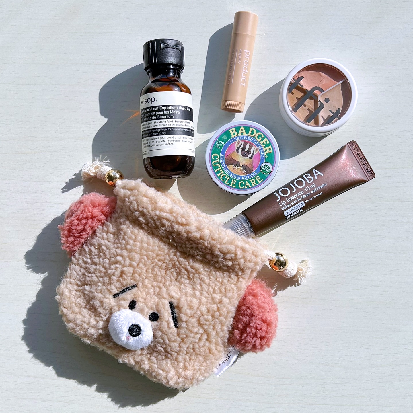 お気に入りのもじゃもじゃ猫ポーチ🐈❤️前回大人気だったから、4月1日から再販だって🥹黒猫ちゃんもかわいいんだよな🐈⬛❤️productの血色リップは、いい香り&ほどよく色づいてくれて好き💋catpouch:@toshin_cpla@chip...