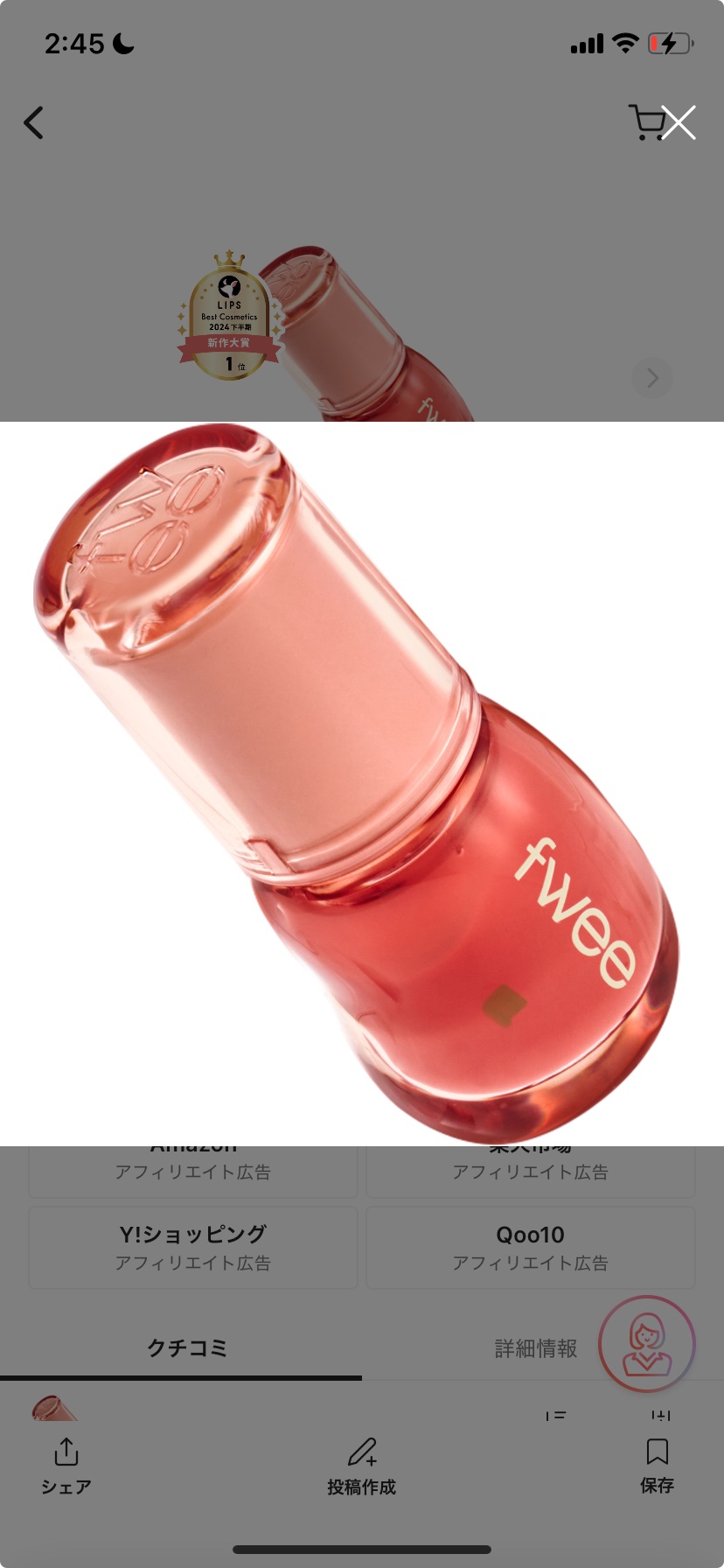 - LIPSベストコスメ2025 リップグロス部門1位LIPSベストコスメ2025 上半期こだわりアワード リップ部門ツヤ賞1位LIPSベストコスメ2024 下半期新作大賞1位LIPSベストコスメ2024 下半期新作賞 グロス部門1位LIPS月間トレンド賞2024年10月 コスメ部門1位LIPS月間トレンド賞2024年8月 コスメ部門3位