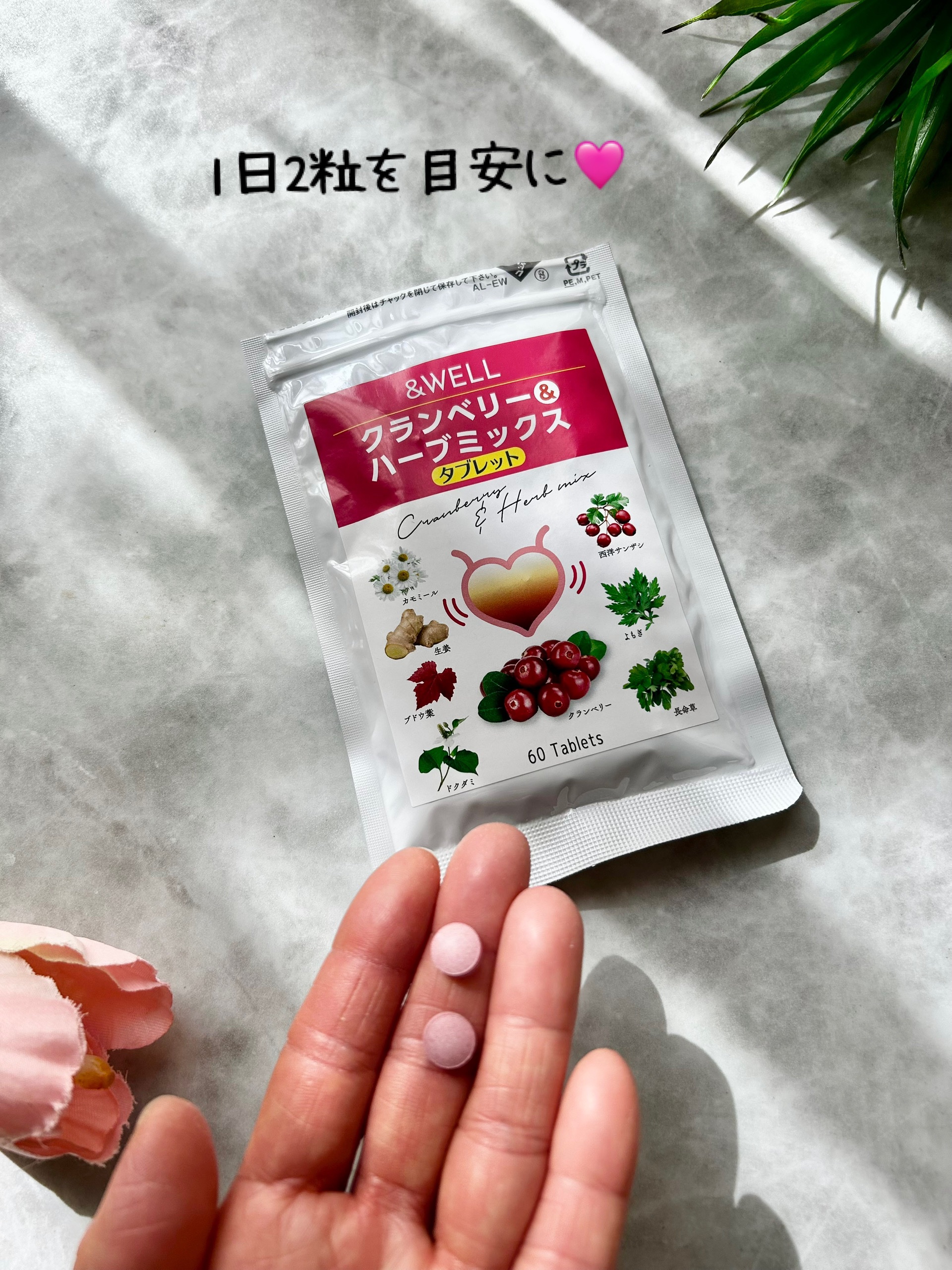 手軽にフェムケアが出来るのは嬉しいなって🥰 1袋60錠だから約1ヶ月分✨ 成分的には&WELLのパーフェクト独自配合らしく、守る成分▶クランベリー、プロポリス、ポカポカ成分▶ショウガ、ヨモギが配合されていて💓 女性特有の繰り返すお悩みや我慢できないお悩みにそっと寄り添うフェムケアサプリです🎀