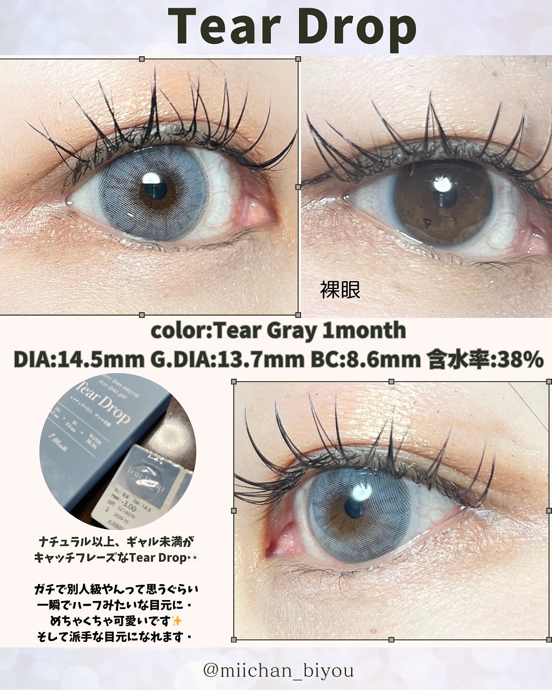 このカラコンは7月の渡韓の際、明洞の店舗で買ってきました。 カラコンありすぎて迷いすぎてグレーとだけ伝えたら、こんな可愛いの出てきた🤣 フレンチシャインシリーズは3色あるみたいなので、気になる方はぜひ試してみて欲しい可愛さです🩶