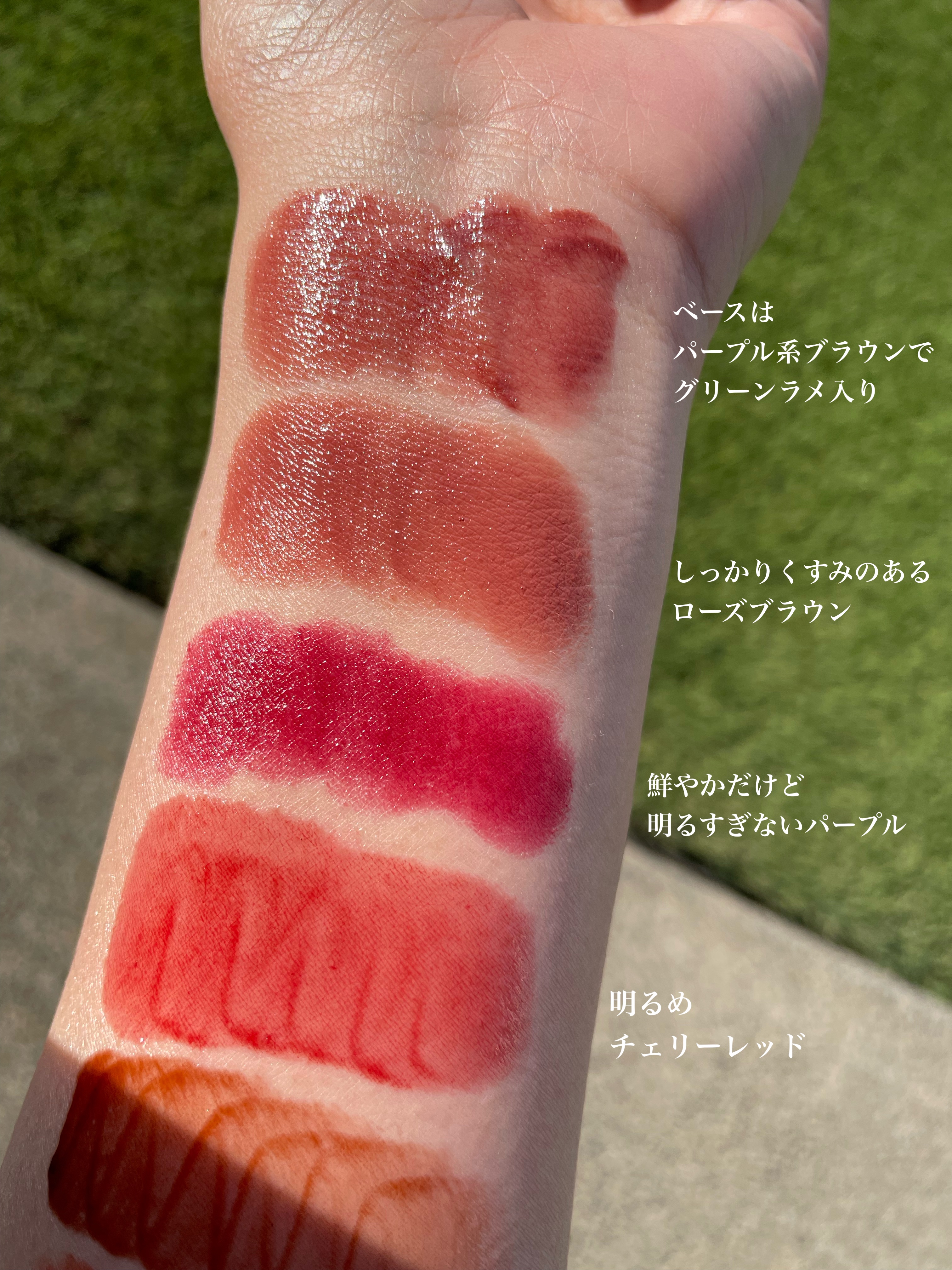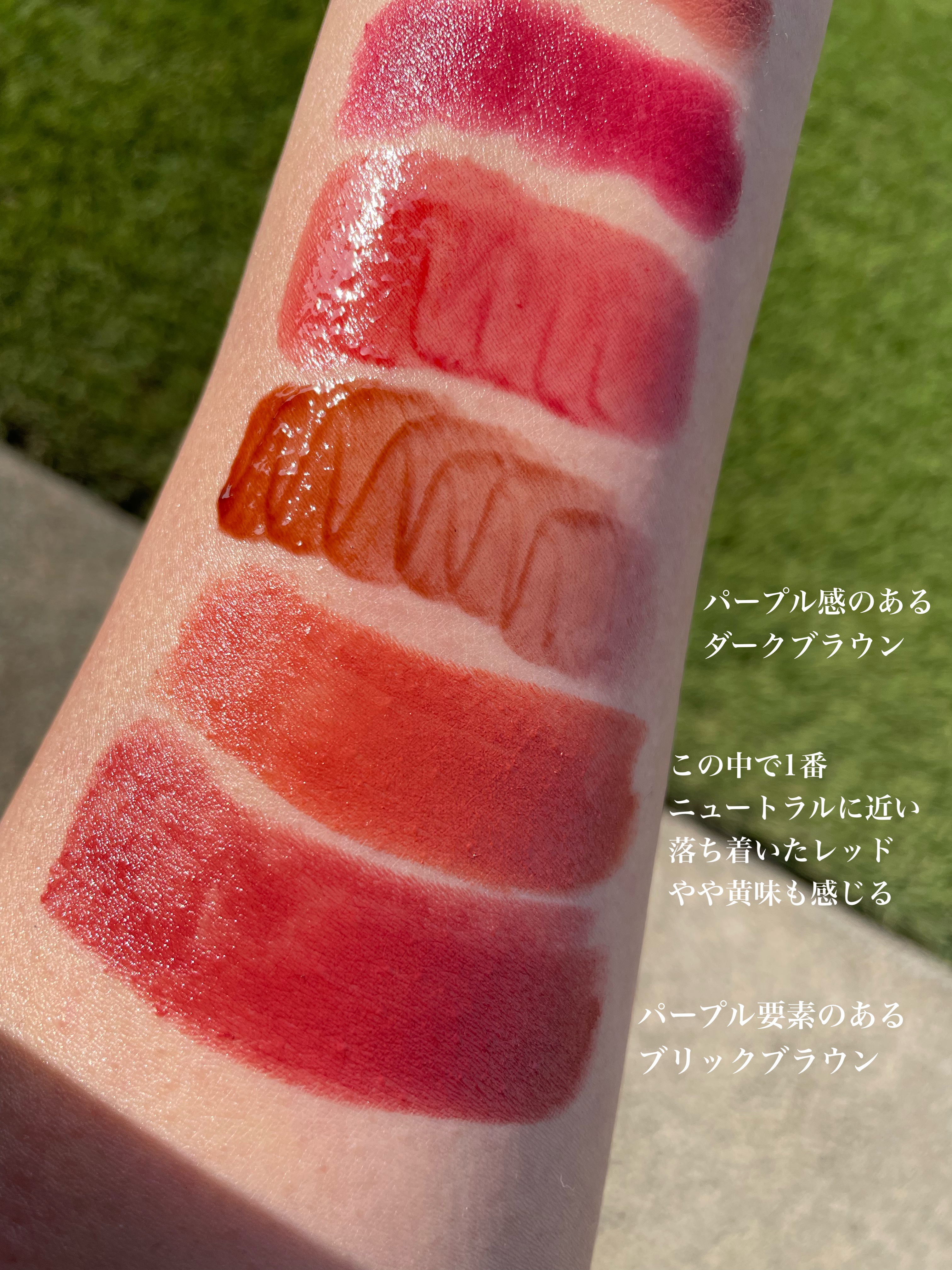 ウォータリーティントリップ03 ベージュブラウン660円 ずうううっと長く愛用中なのはダントツでこれ。 透け感のあるツヤ赤みブラウンでおしゃれに落ち着いた雰囲気になる。 秋のモードな雰囲気が出せるカラーで赤みのあるブラウンが好きな人は絶対好き。 こなれ感の出るオレンジブラウン系で秋冬のオレンジメイクにぴったり。