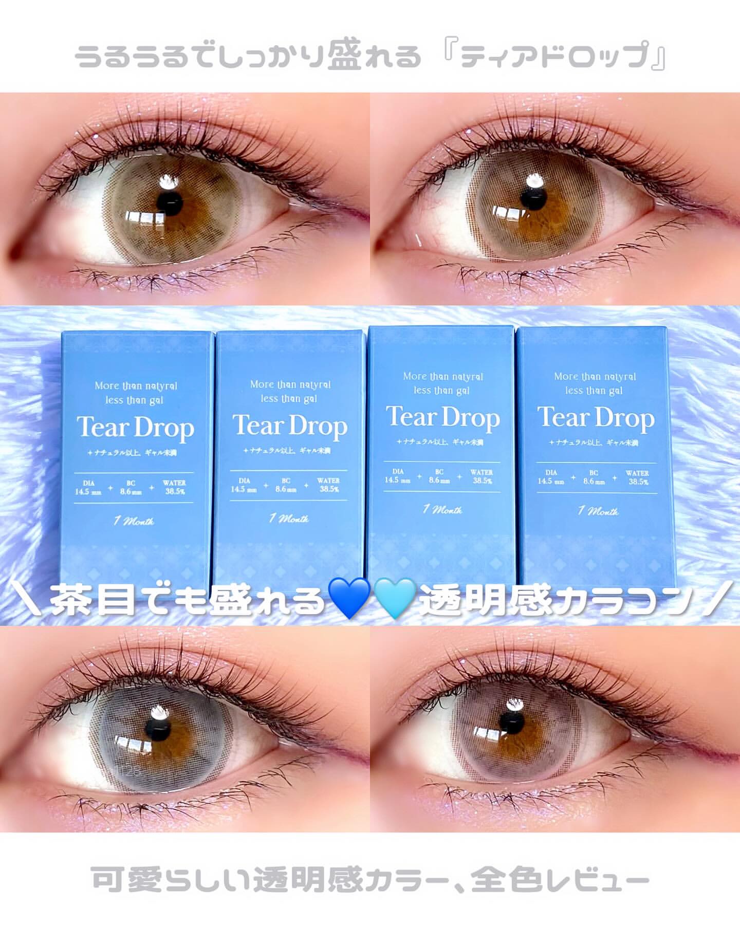 ナチュラル以上ギャル未満が叶う、うるうる涙目になれちゃうカラコンを紹介するよ〜🩵 大人っぽさのなかに儚げがあるブルーグレー。ダークグレーのフチでうるうる感。涙を浮かべたような瞳に❤︎ 発色がいいからいつもとは違う自分になれちゃうかも、、𐔌՞・·・՞𐦯🤍