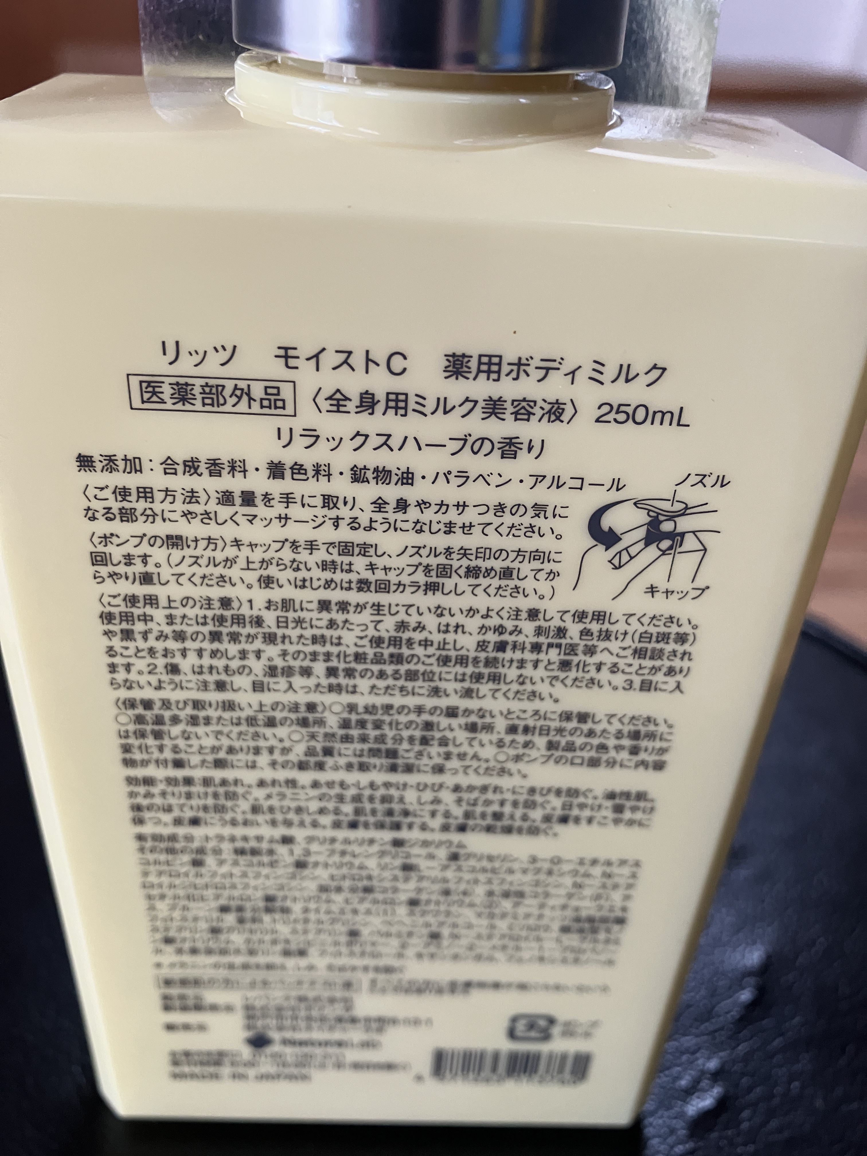 商品詳細情報リッツ モイストC 薬用ボディミルク リラックスハーブの香り