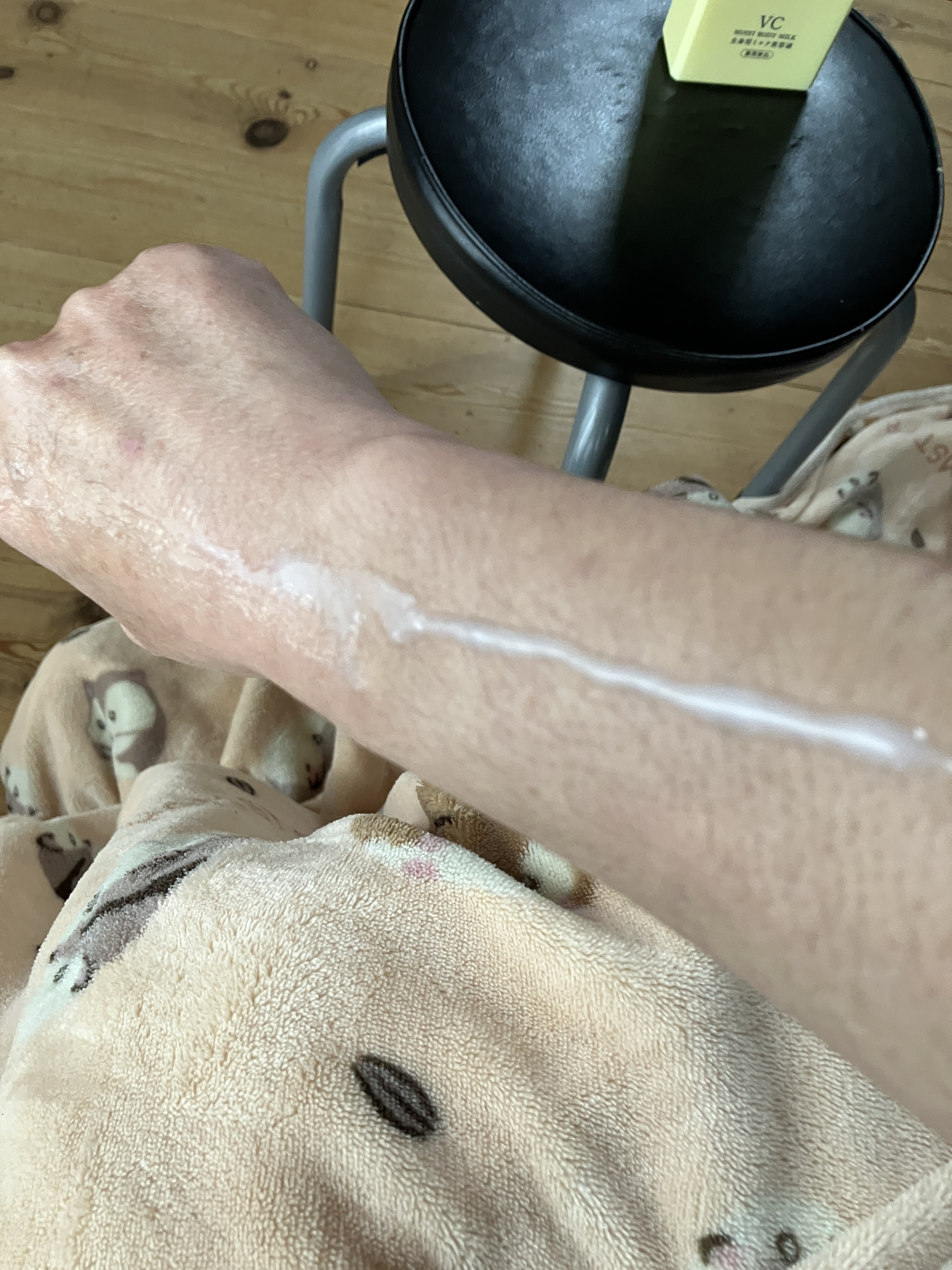 1本で美白も潤いも叶う! ネイチャーラボ 様の「LITS モイストC薬用ボディミルク」を使ってみました! みずみずい、とろみのあるローションのようなボディミルク。 柑橘系の爽やかな香りに、ハーブの香りと心落ち着くウッディ系の香りがほんのりと感じられてきました。 ベタベタしないさらりとした使い心地で、しっとりと潤うようなつけ心地♪(*^^*)
